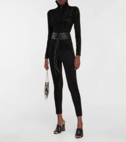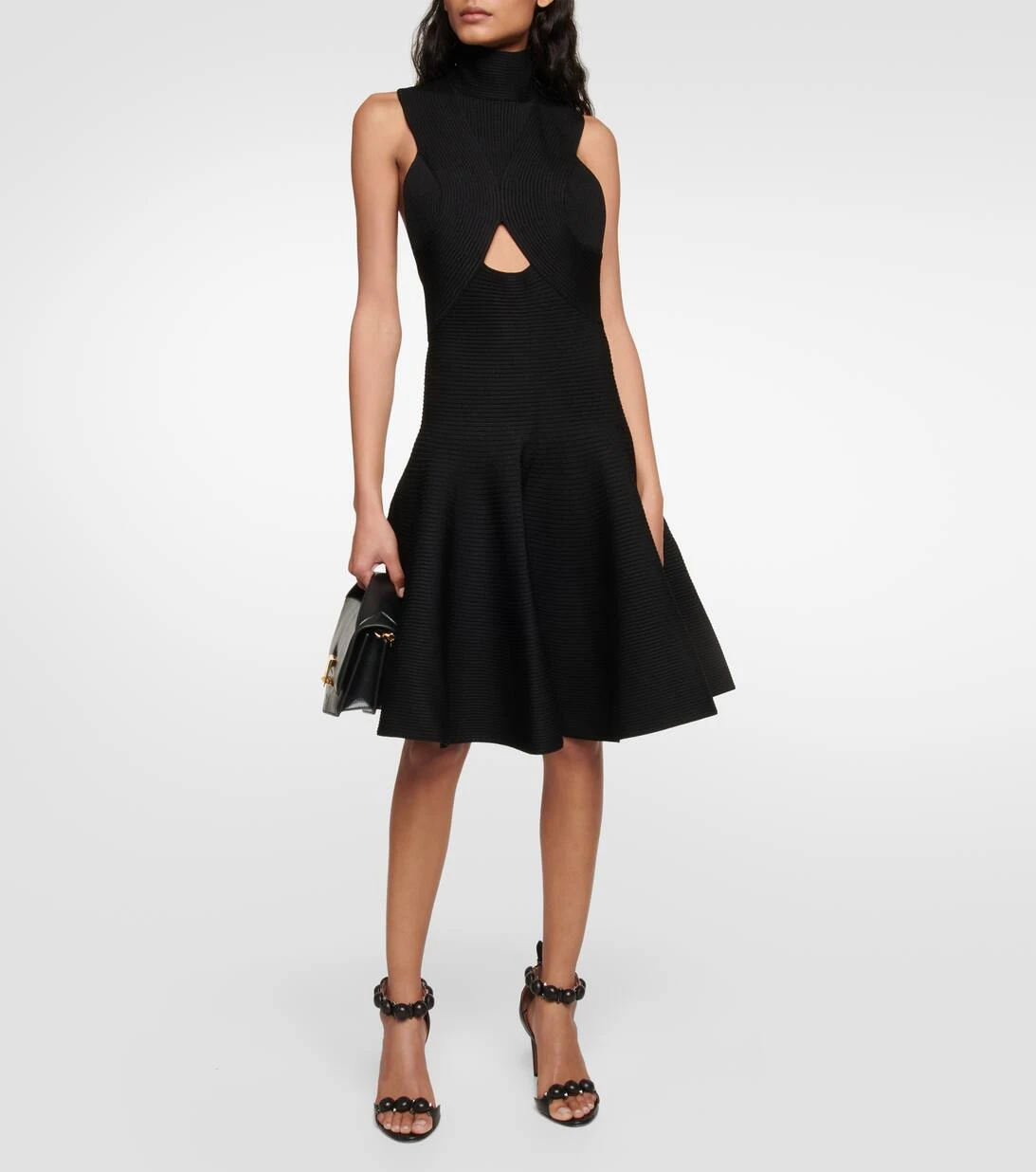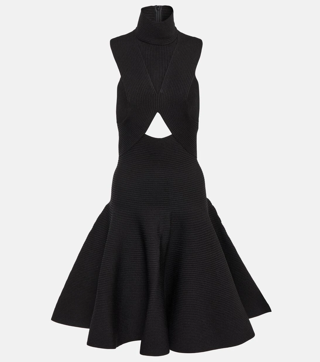 Dieses skulpturale Minikleid von Alaïa präsentiert sich in einer schmeichelnden, ausgestellten Silhouette. Es wurde aus einem elastischen Jersey gefertigt und mit einem hohen Stehkragen, Cut-outs unterhalb der Brust, einer überschnittenen Taille und einem voluminösen Rock versehen.