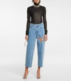 Area verleiht diesen Jeans, die mit einer goldfarbenen Sonne auf dem zweifarbigen Gürtel verziert sind, eine modische Ästhetik. Das Modell sitzt hoch auf der Taille und fällt in lockere, weite Beine, die durch Cut-outs in der Mitte des Oberschenkels unterbrochen werden.