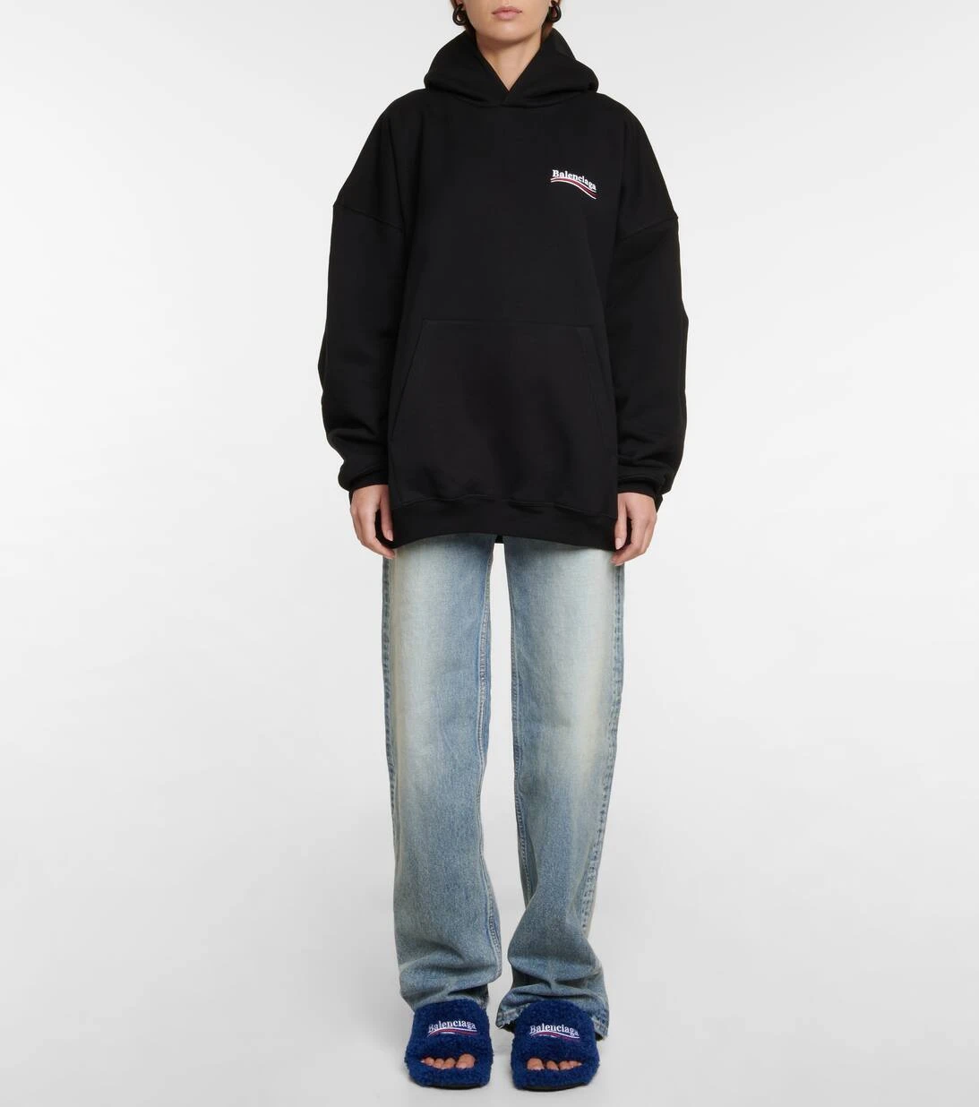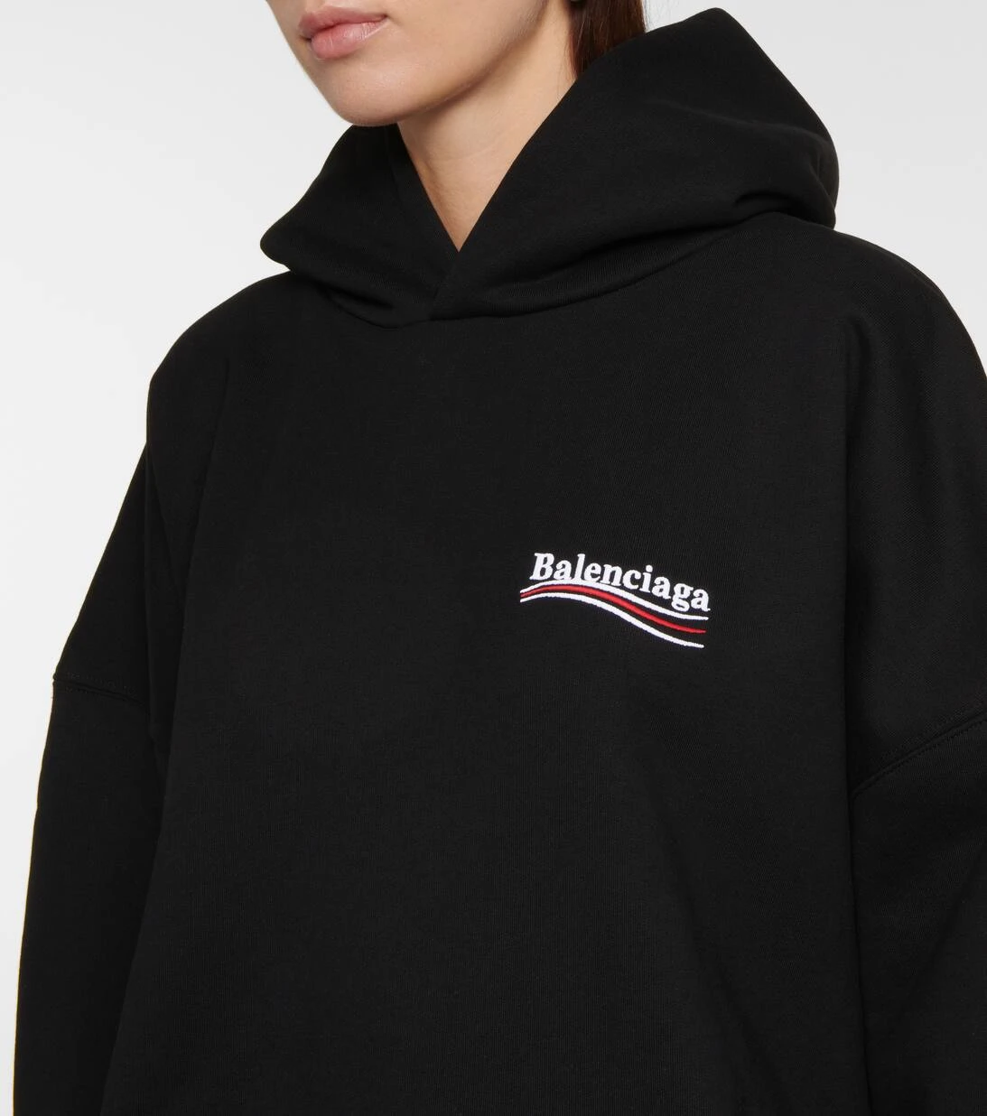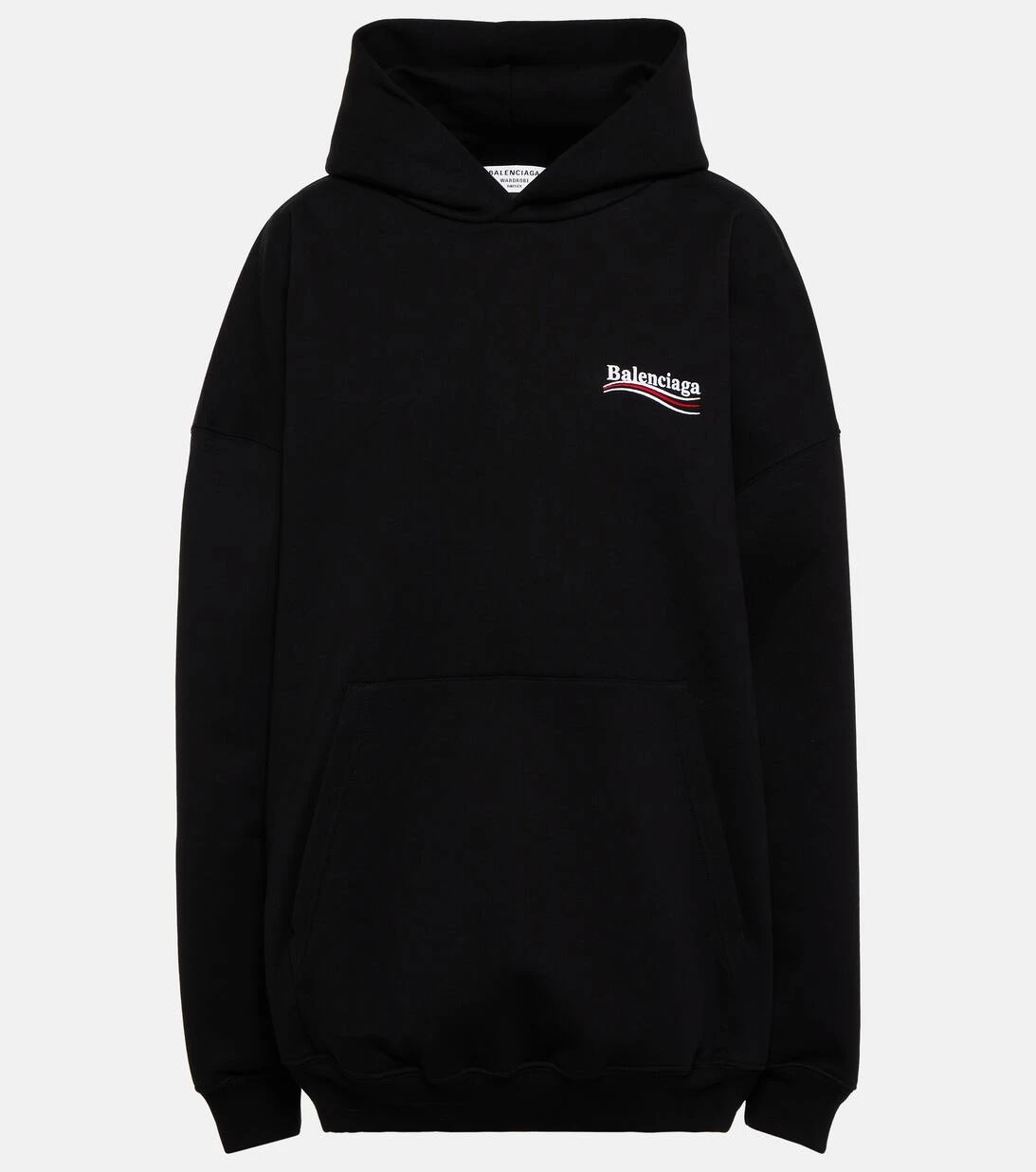 Dieser Hoodie von Balenciaga sorgt an arbeitsfreien Tagen für ultimativen Komfort. Das Oversize-Design aus Baumwolle zeigt sich mit einem Logo-Print der Marke auf der Brust, der von politischen Slogans inspiriert ist.
