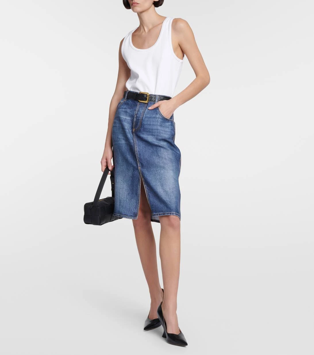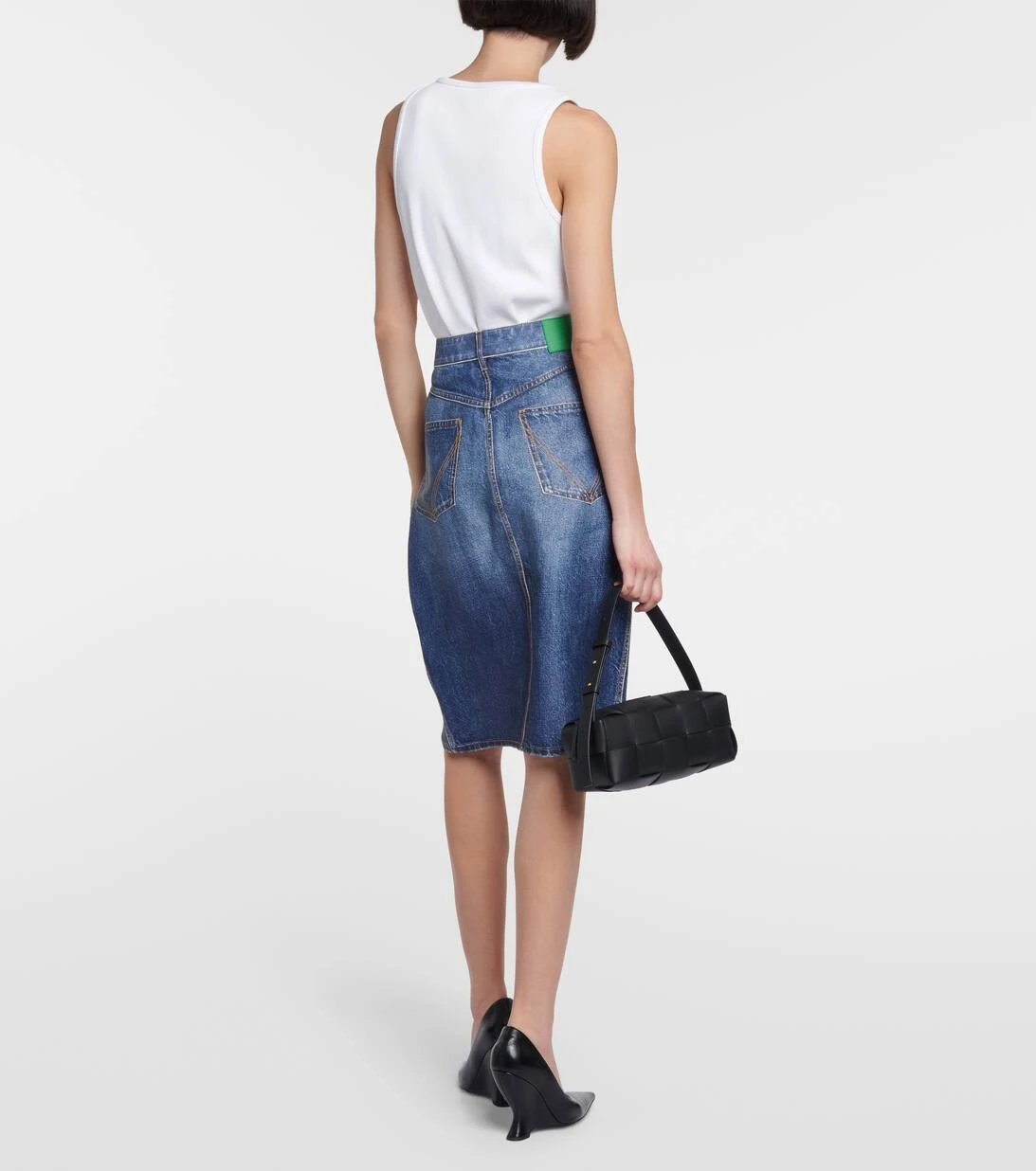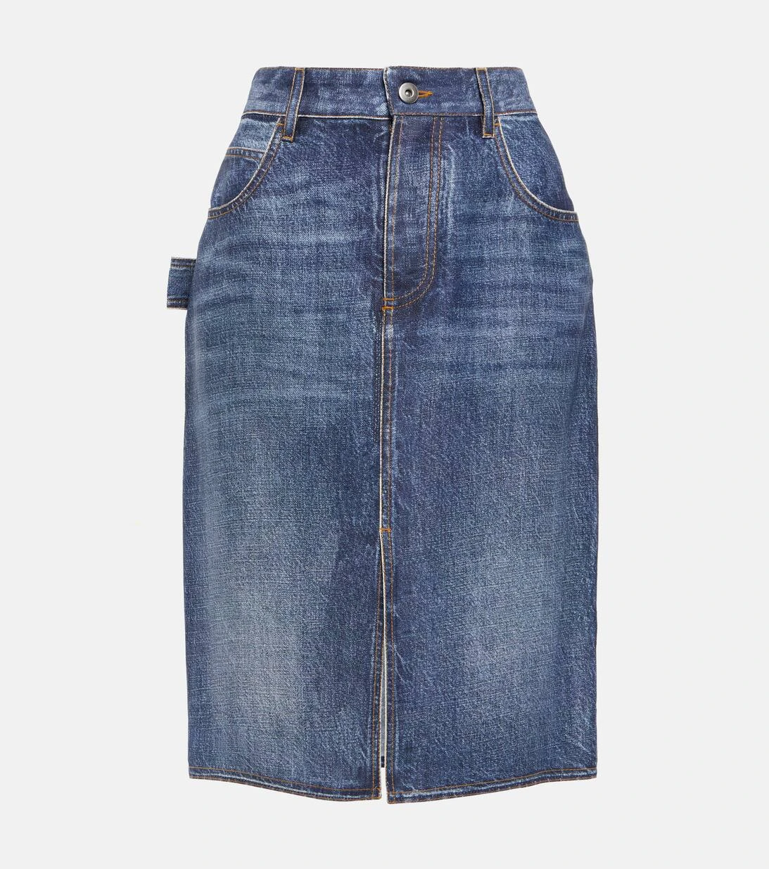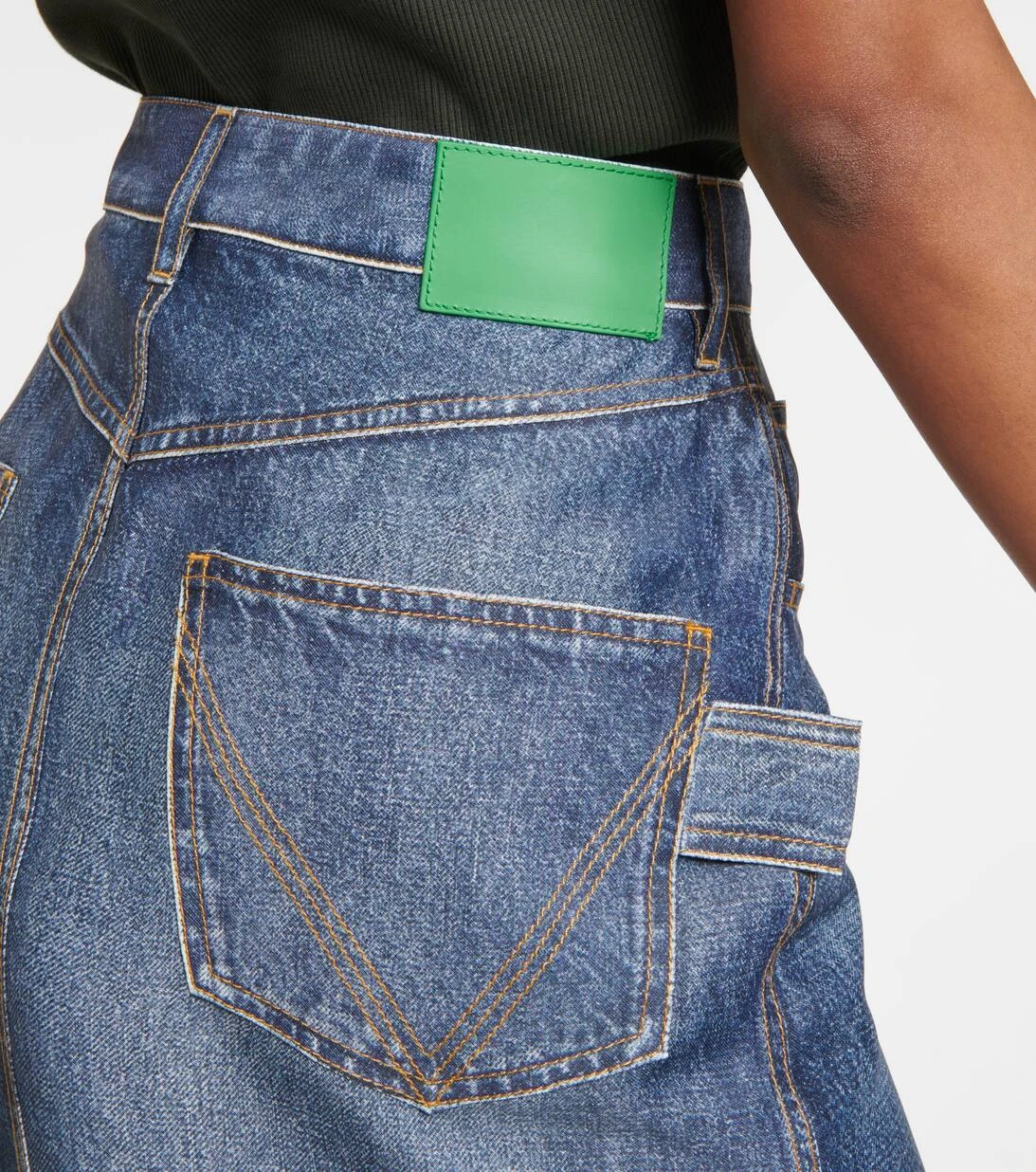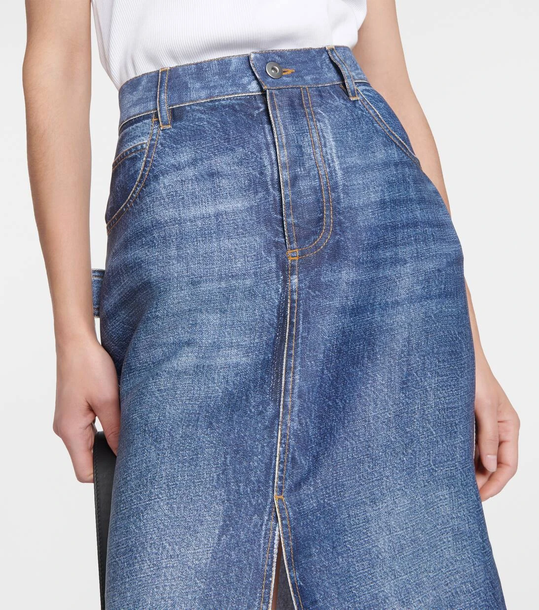 Bottega Veneta kreiert mit diesem bedruckten Midirock eine optische Illusion. Das gerade geschnittene Design aus einem Seidengemisch erinnert an einen klassischen Denim Style und bietet einen Knopfverschluss auf der Vorderseite.