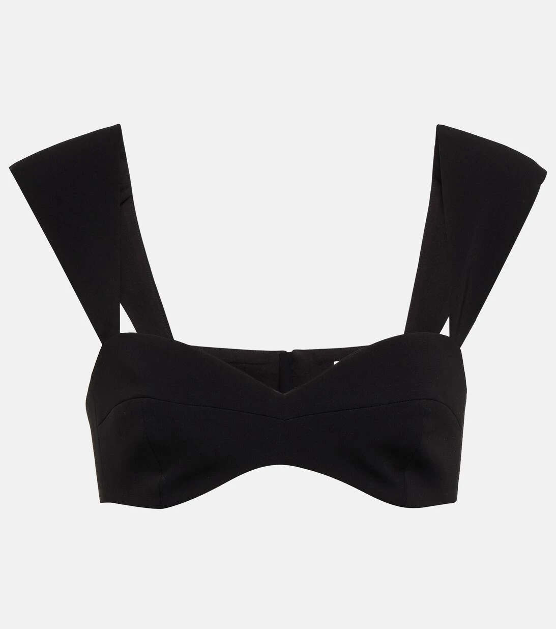 Verleihen Sie Ihren Looks eine romantische Note mit diesem Cropped-Top von Mônot. Der elegante herzförmige Ausschnitt wird durch einen geschwungenen Saum und Flügelärmel ergänzt. Das Design wurde aus luxuriösem Crêpe gefertigt und für eine maßgeschneiderte Optik mit Abnähern versehen.
