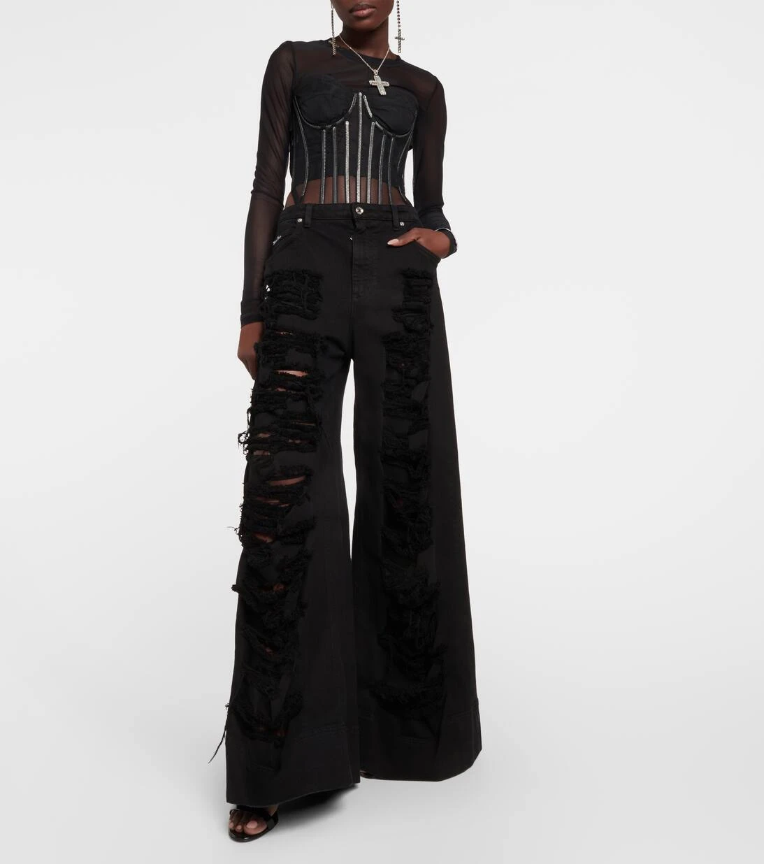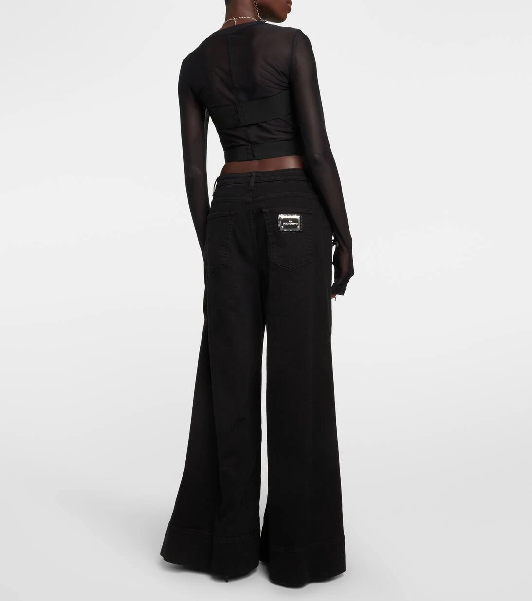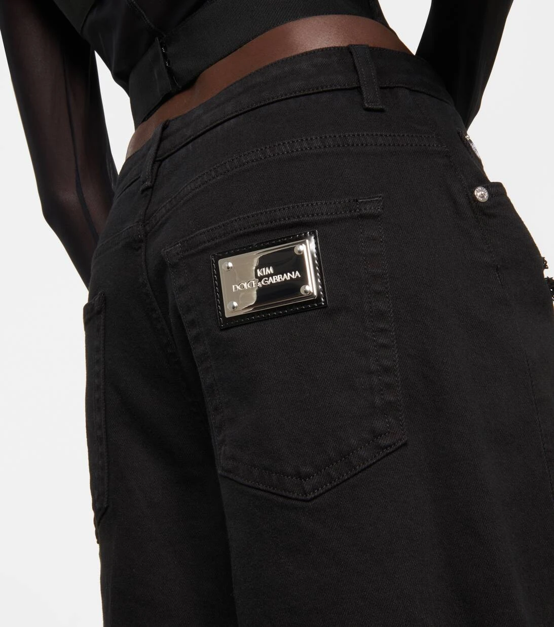 Die Kollaboration von Dolce&Gabbana mit Kim Kardashian spiegelt die feminine Eleganz der Brand perfekt wider. Diese High-Rise Jeans zeigen sich mit auffälligen Schlitzen sowie mit einem „Kim Dolce&Gabbana“-Emblem.
