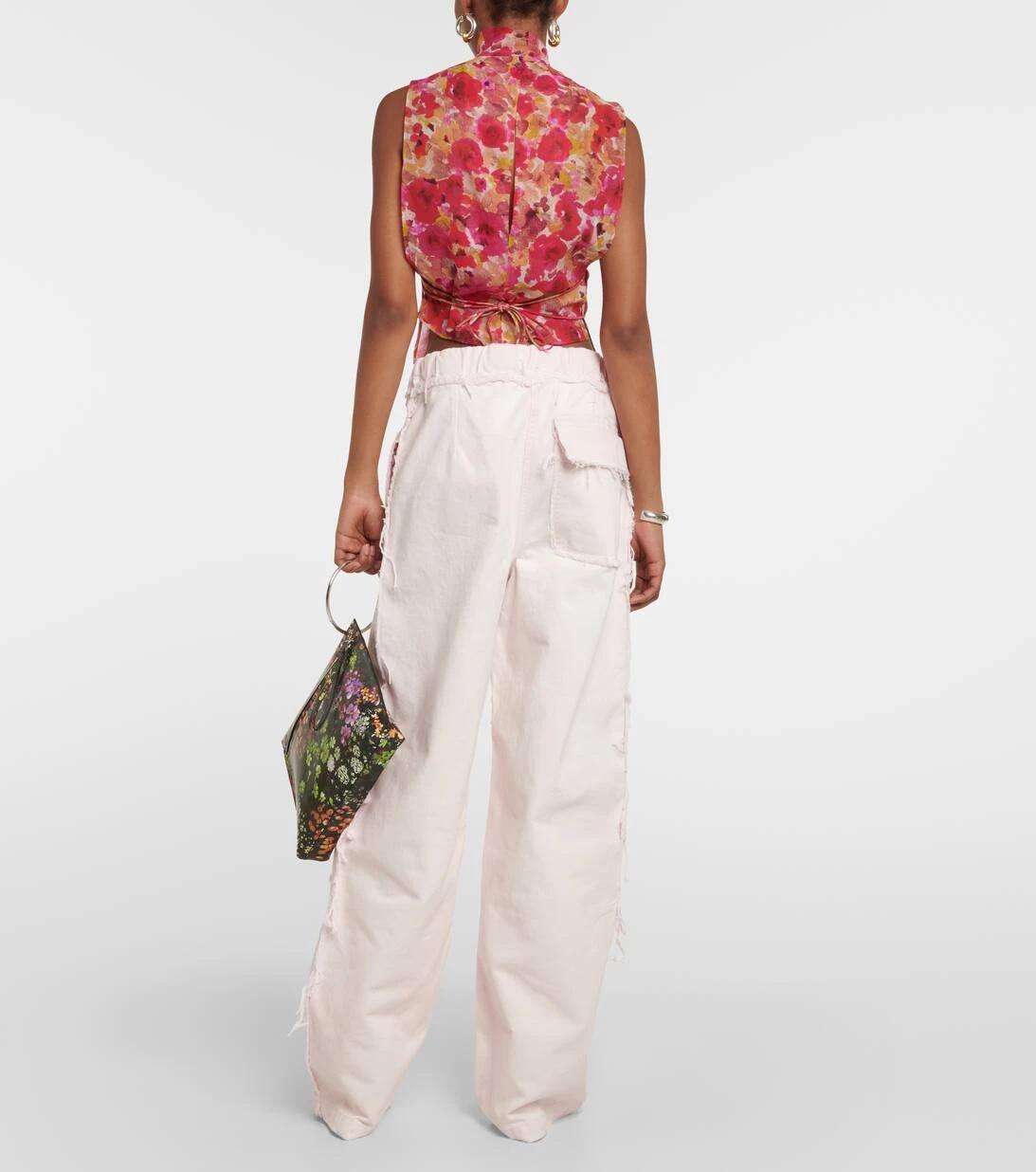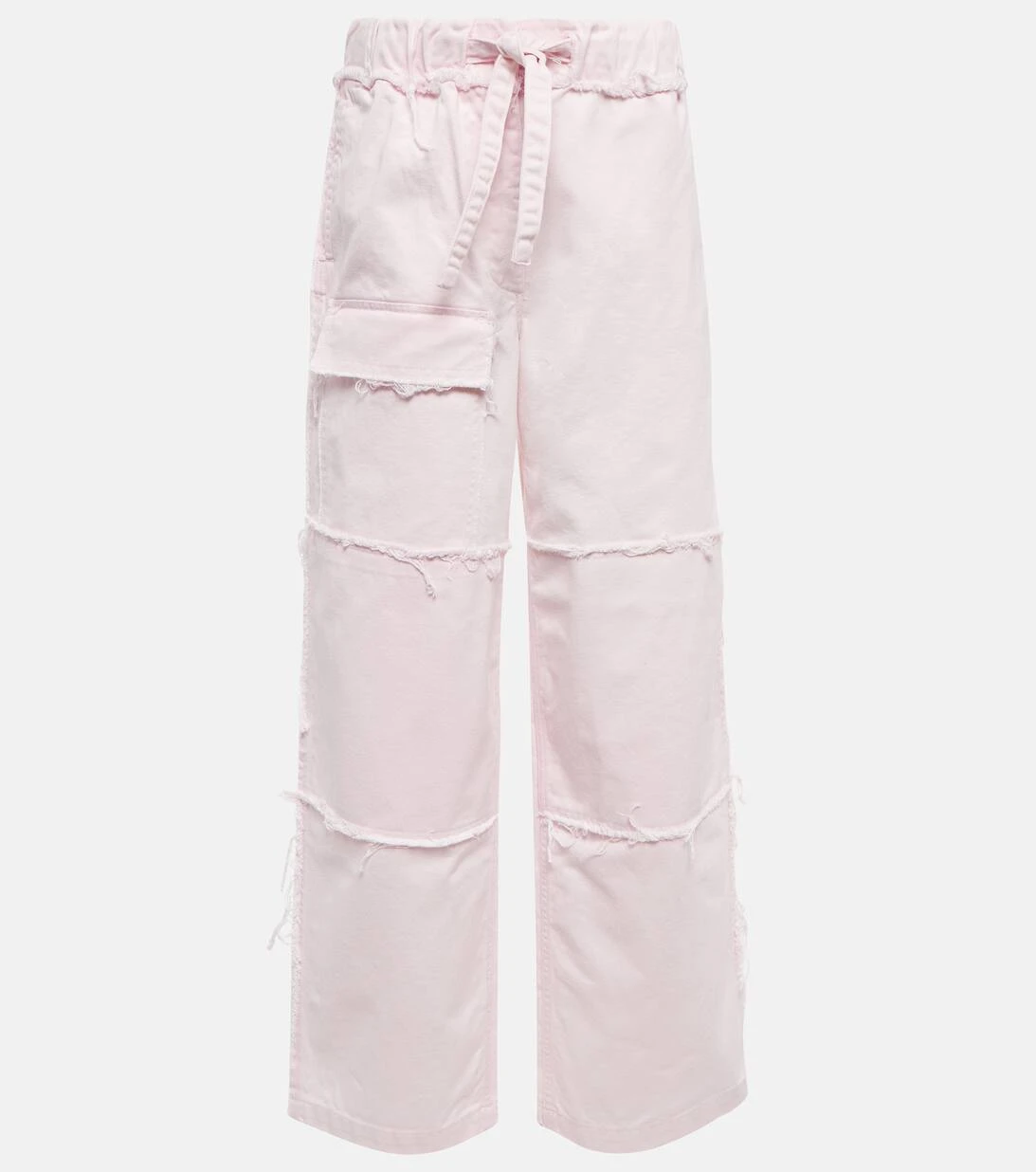 Diese rosafarbene Hose aus Denim von Dries Van Noten präsentiert sich in der Trend-Silhouette der Saison. Das hoch auf der Taille sitzende Modell wird von einem integrierten Gürtel und Taschen im Utility-Stil abgerundet.