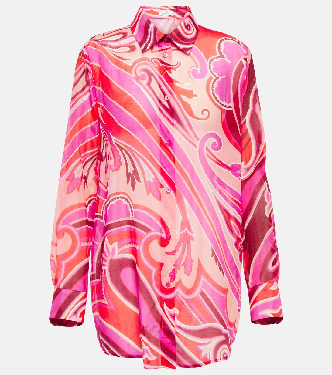 Dieses Hemd von Etro präsentiert sich mit einem bunten Print, der an die 70er-Jahre erinnert. Das Modell wurde in Italien aus luxuriöser Baumwolle und Seide gefertigt und mit verdeckten Knöpfen versehen. Es ist eine perfekte Ergänzung für Ihre Office-Garderobe.