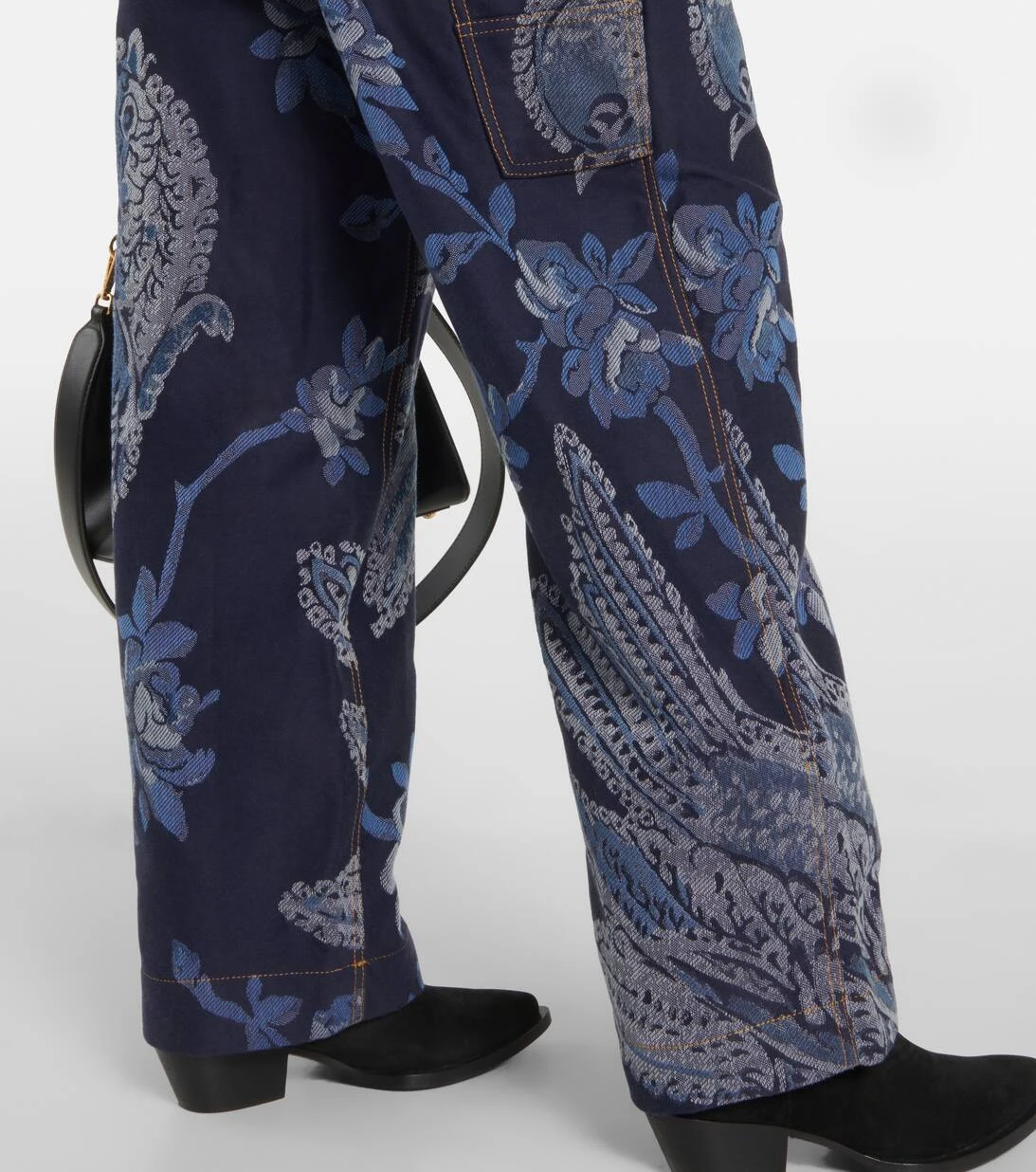 Das Paisley-Muster ist so typisch für Etro, dass es zu einem Markenzeichen des Hauses geworden ist. Das Motiv ziert auch diese weiten Jeans mit hoher Taille und mehreren Taschen.