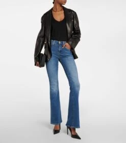 Frame kreiert legendäre Denim-Designs mit fairen Herstellungspraktiken und nachhaltig gewonnenen Materialien. Die Le Bardot Jeans präsentieren sich in einer ausgestellten High-Rise-Silhouette.