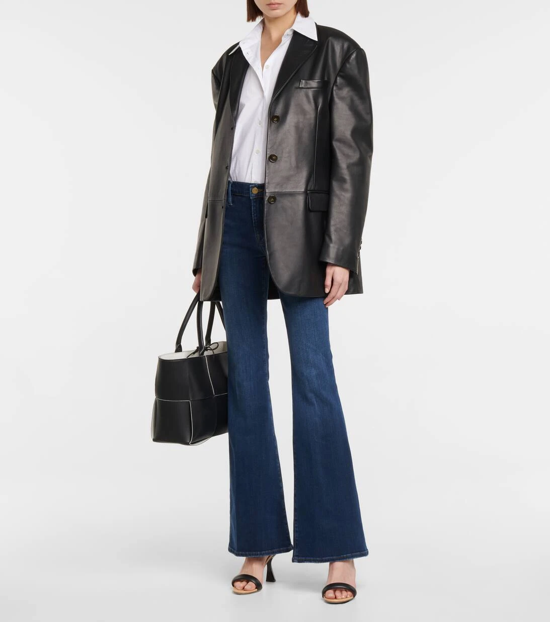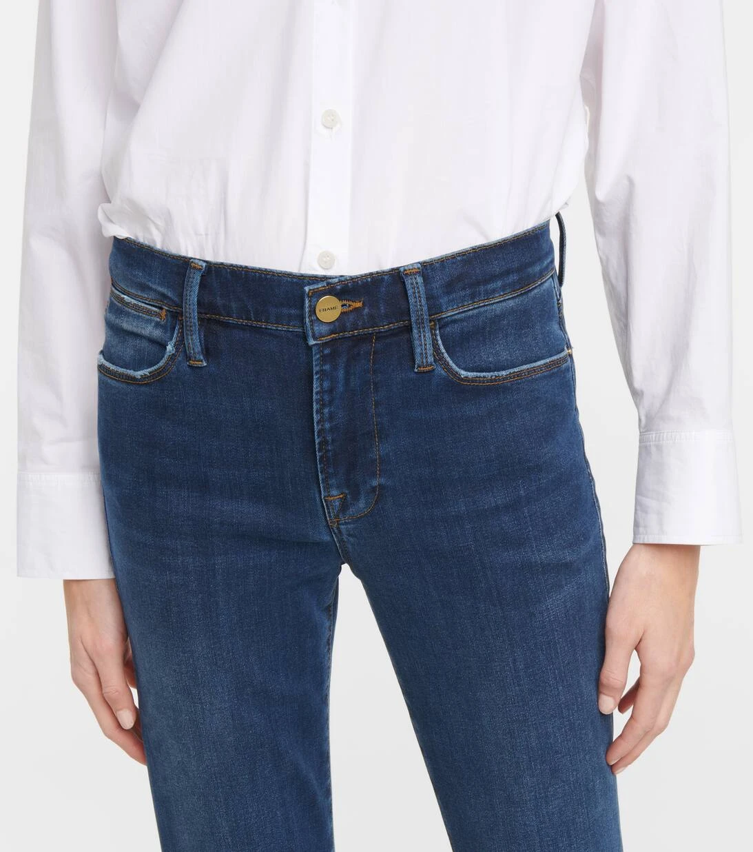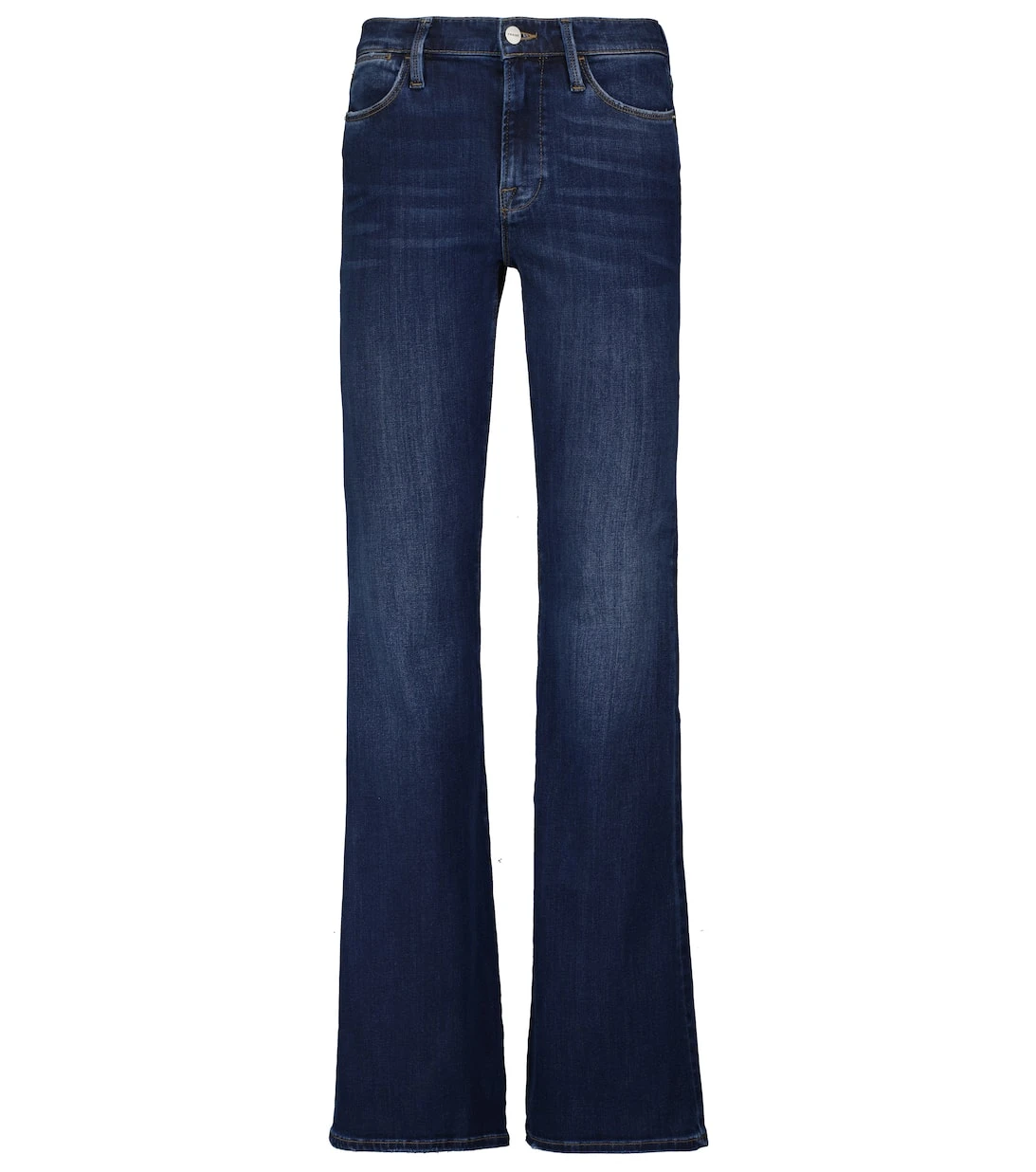 Frame bringt mit der Le High Flare Jeans 70er-Jahre-Flair in Ihre Denim-Kollektion. Diese High-Rise Jeans wurden aus einem elastischen Baumwollgemisch gefertigt und präsentiert sich in einer klassischen dunklen Waschung, die die ausgestellte Silhouette unendlich vielseitig macht.