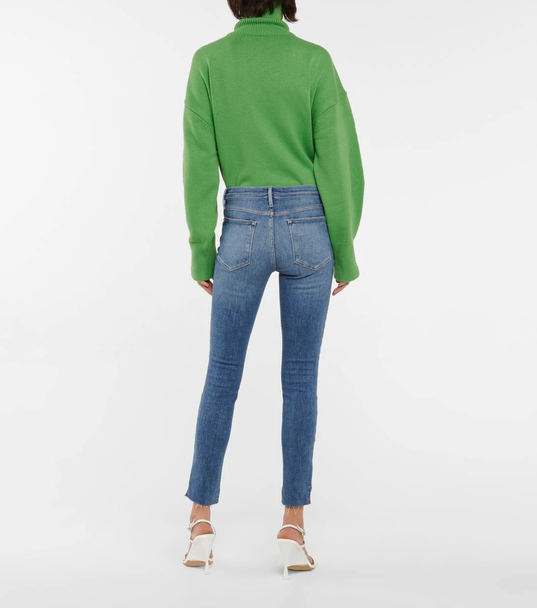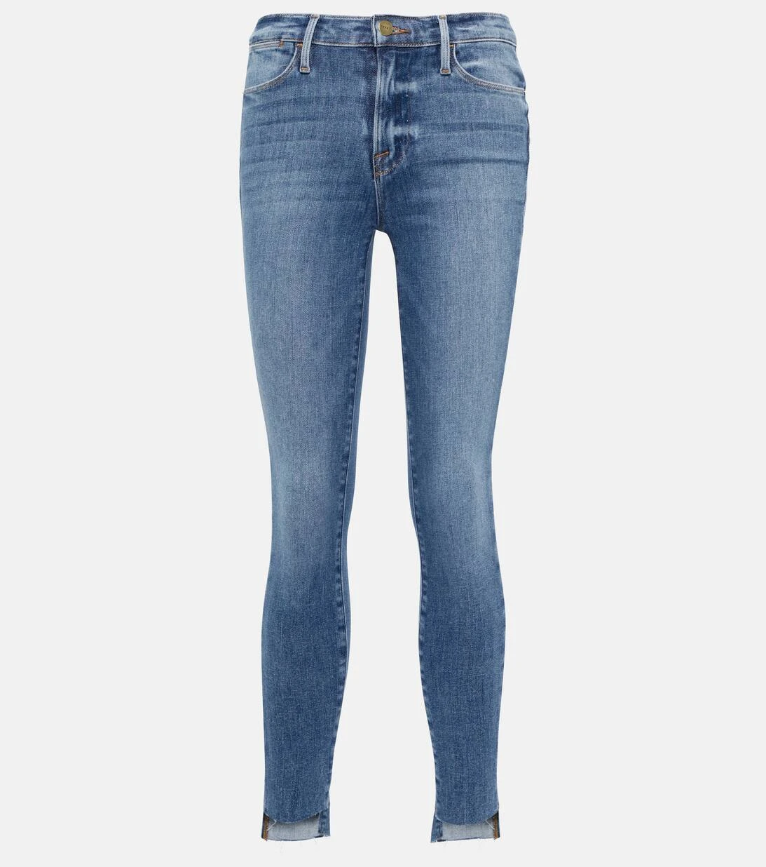 Die Le High Skinny Jeans von Frame in verblasstem Blau zeichnen sich durch eine formende, schlanke Silhouette und eine hohe Taille aus. Sie wurden aus formstabilem Denim gefertigt und mit subtilen Cut-outs am Saum versehen.