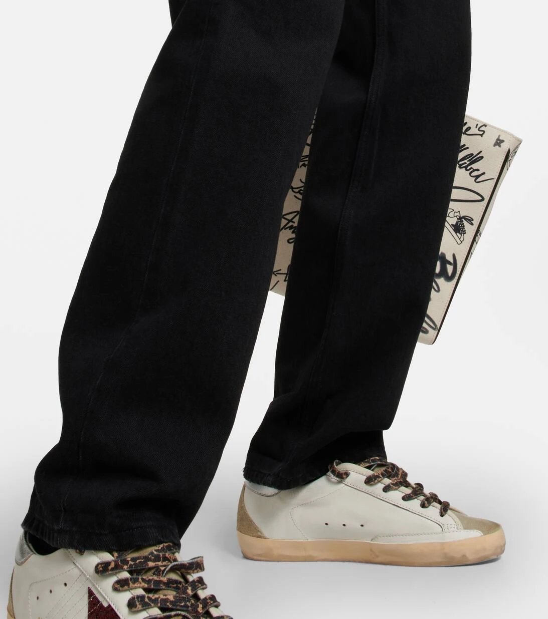 Die Kim Jeans von Golden Goose verleihen Ihrer Denim-Kollektion ein Update. Das Modell mit weitem Bein sitzt hoch in der Taille und verfügt über einen abnehmbaren weißen Aufnäher, der das gestickte „G“ in Rot zeigt.