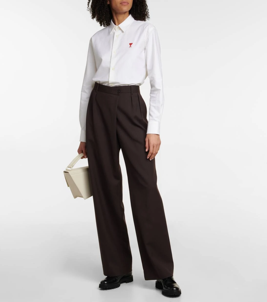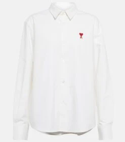 Dieses klassische Hemd von Ami Paris wurde aus weißer Baumwollpopeline gefertigt. Es ist locker geschnitten und mit einer Ami de Cœur Logo-Stickerei verziert.