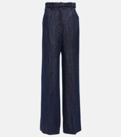 Diese Hose von Gabriela Hearst wurde aus Leinen in Denim-Optik gefertigt. Das Modell mit Gürtel sitzt hoch auf der Taille und geht in eine Silhouette mit weitem Bein über.