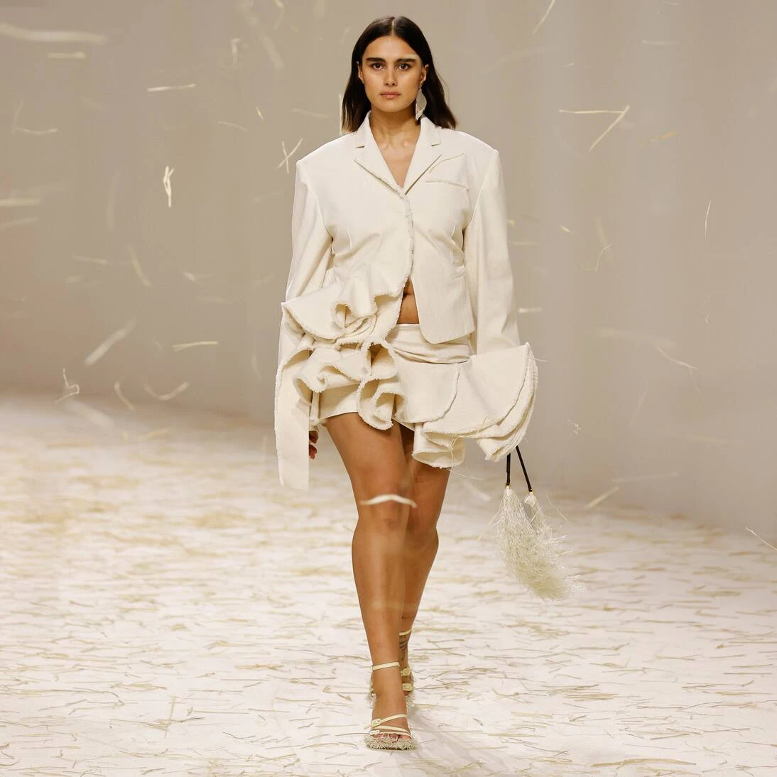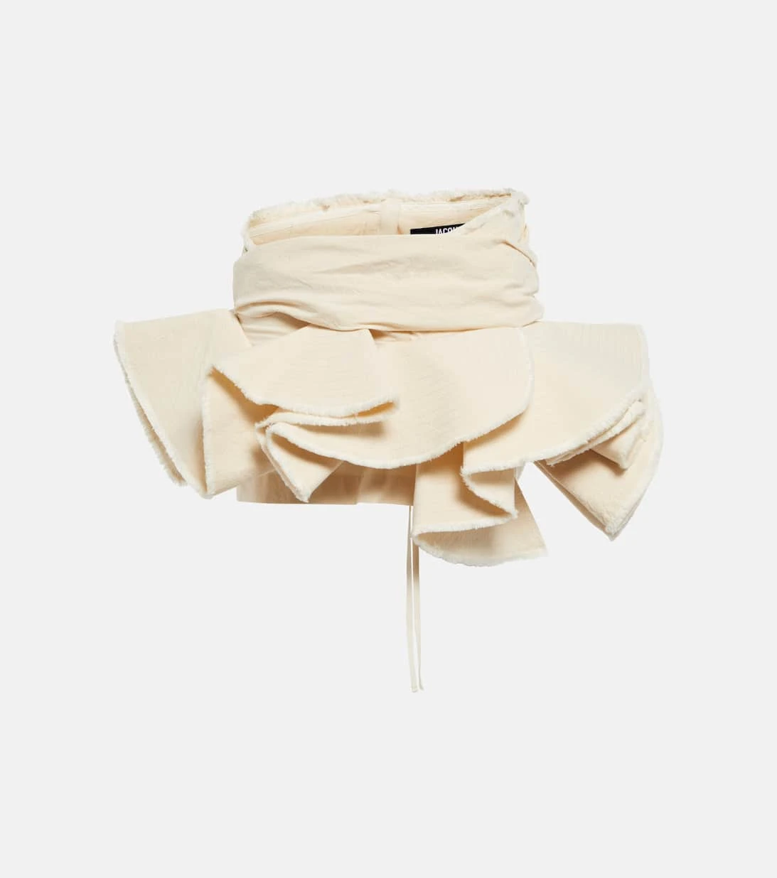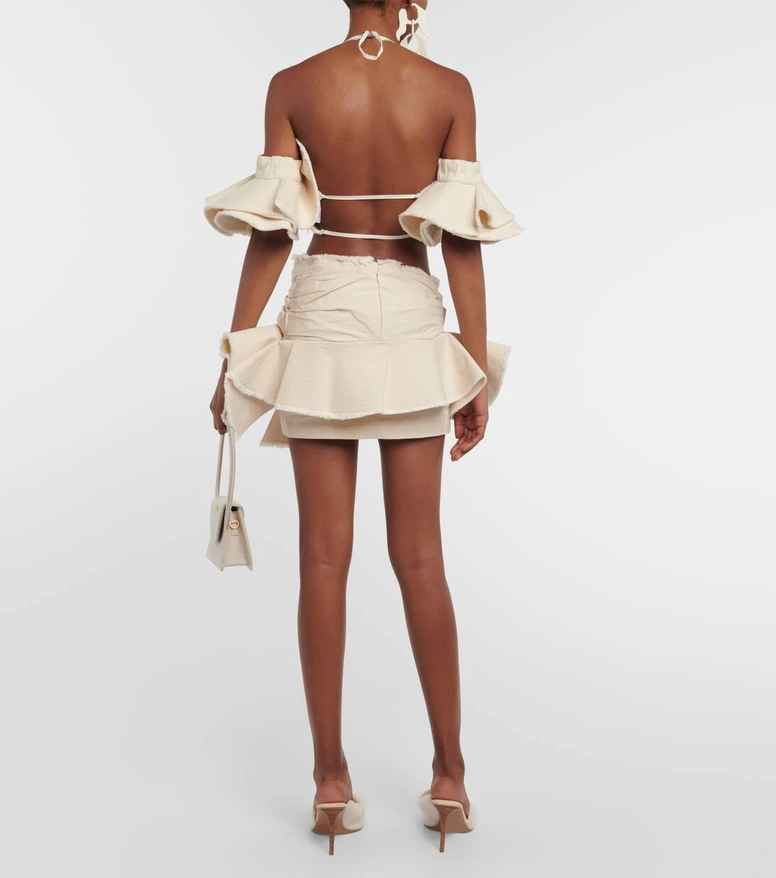 Setzen Sie mit dem La Mini Jupe Artichaut Rock von Jacquemus auf eine einzigartige Silhouette. Das asymmetrische Design aus Baumwoll-Canvas hat eine tiefe Taille, abgesteppte Rüschen und einen verstellbaren, mit Perlen verzierten Bund.