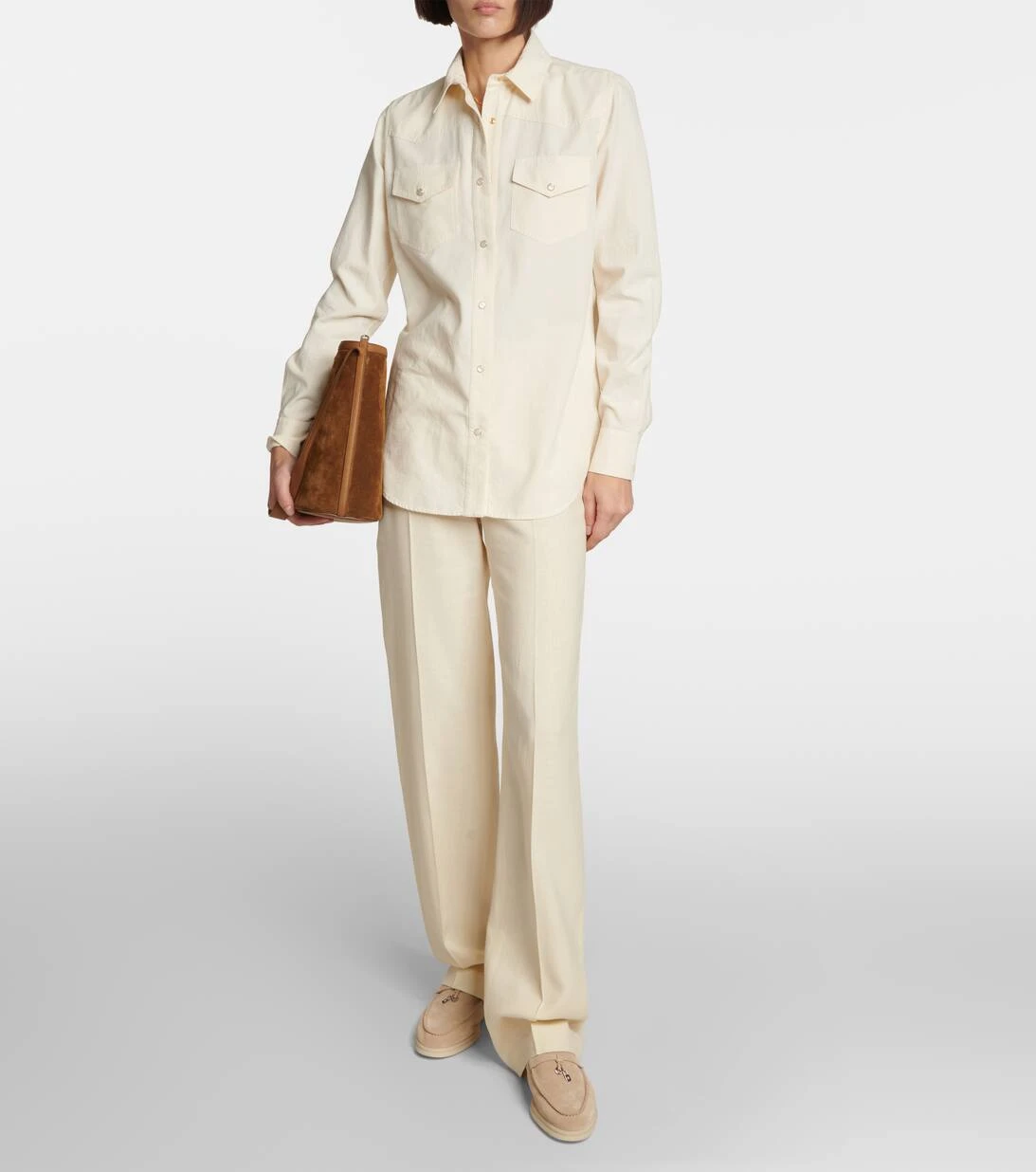Für entspannte aber luxuriöse Looks empfehlen wir die Designs von Loro Piana, wie das Yelena Hemd. Das Modell aus gewaschenem Baumwoll-Chambray fühlt sich weich an und wird von Perlmuttknöpfen und einer dezenten Logostickerei an beiden Manschetten abgerundet.