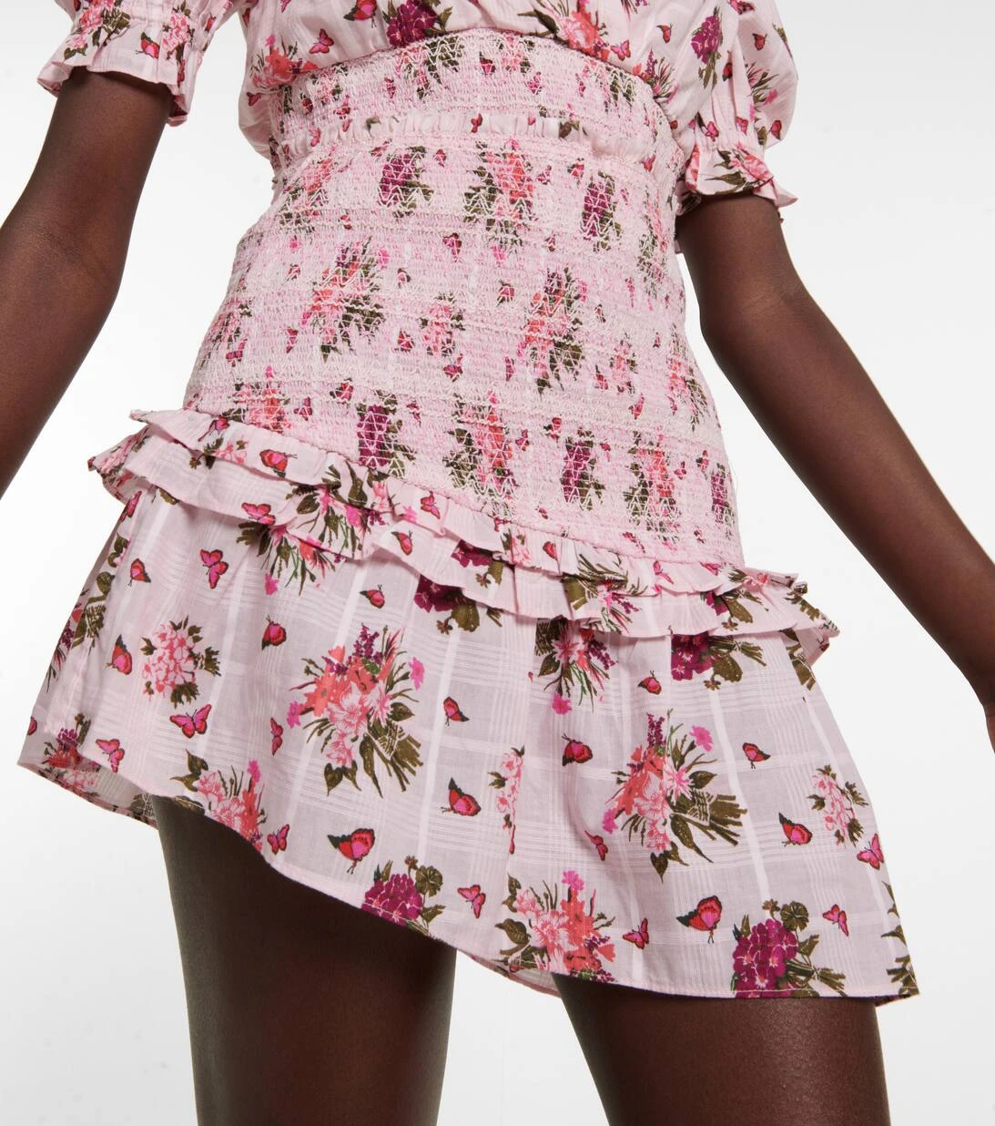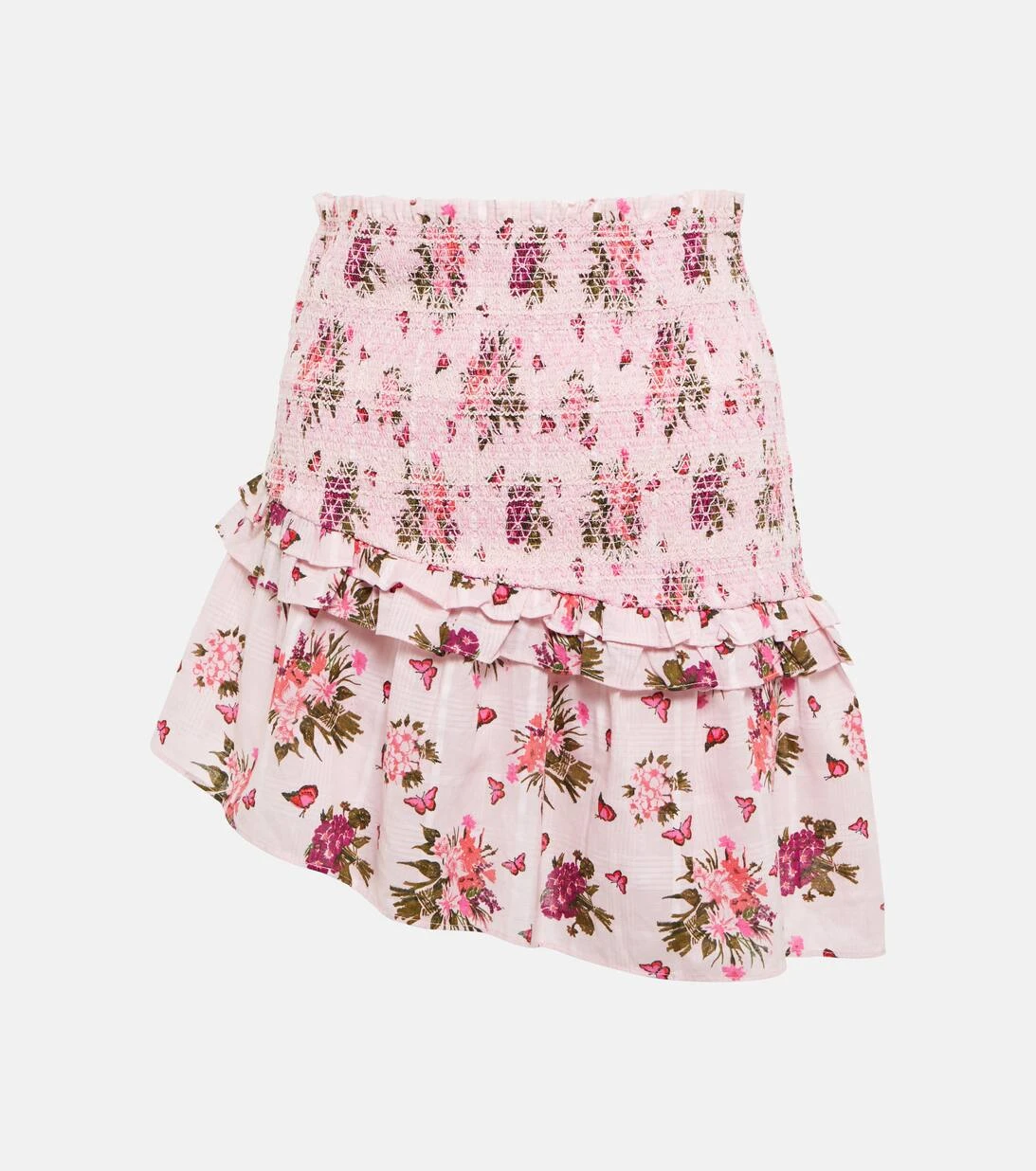 Bei romantischen Styles wie dem Varana Minirock können Sie sich immer auf LoveShackFancy verlassen. Ein breiter, geraffter Bund und ein asymmetrischer Saum prägen das Design aus reiner Baumwolle mit einem zarten Blumenprint.
