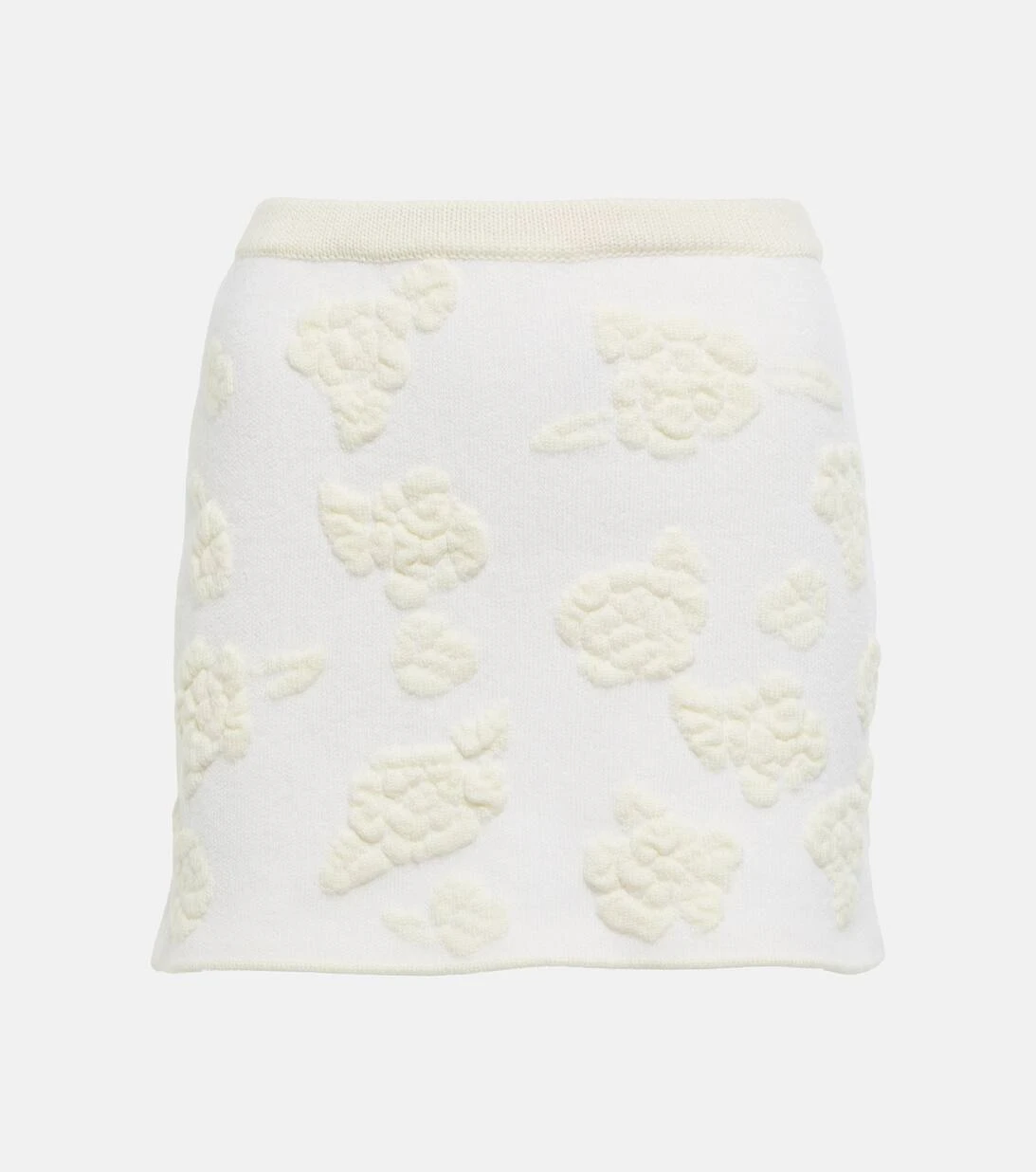 Dieser Minirock von Magda Butrym wurde aus einem Wollgemisch gefertigt und mit dimensionalen cremefarbenen Stickereien verziert. Das Design sitzt hoch auf der Taille und hat eine figurbetonte Silhouette.