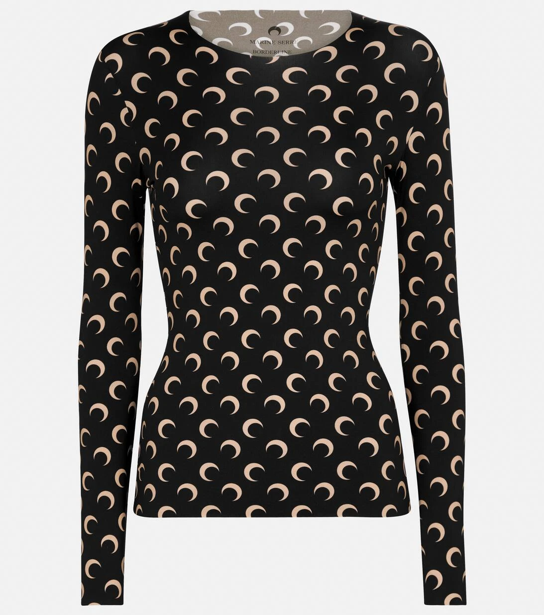 Das braune Longsleeve von Marine Serre ist allover mit beigefarbenen Halbmonden bedruckt – dem Signature-Symbol des Labels. Es wurde aus Jersey mit einer enganliegenden Passform gefertigt. Kombinieren Sie das Modell sowohl zu Hosen als auch zu Röcken.