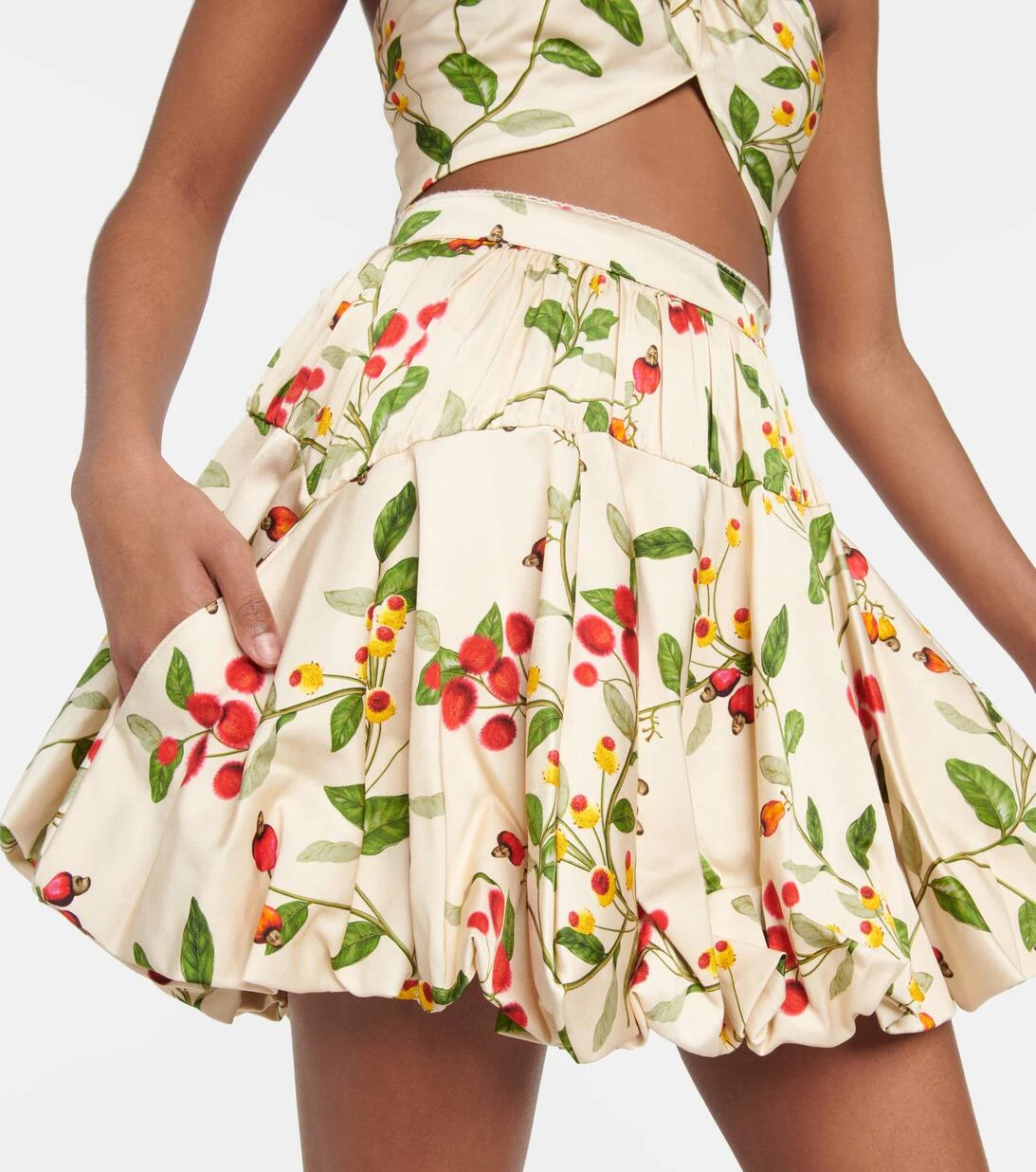 Der Hinojo Frutal Minirock von Agua by Agua Bendita ist eine schöne Ergänzung für Ihre Sommergarderobe. Das High-Rise-Modell verfügt über einen Ballonrock mit Falten und kann mit dem passenden Top zu einem abgestimmten Ensemble kombiniert werden.