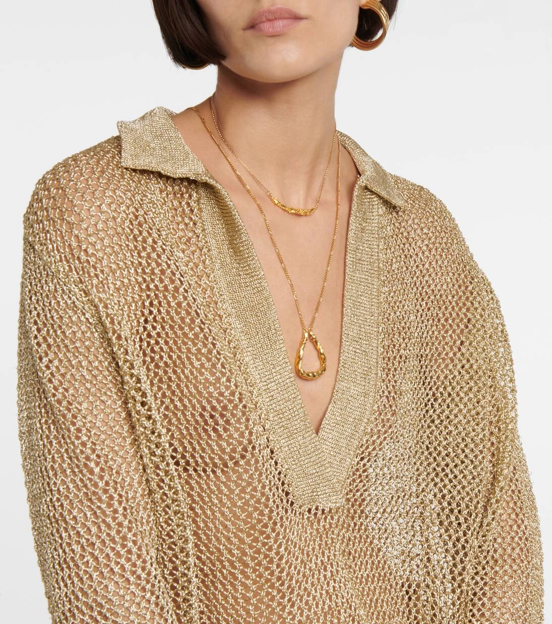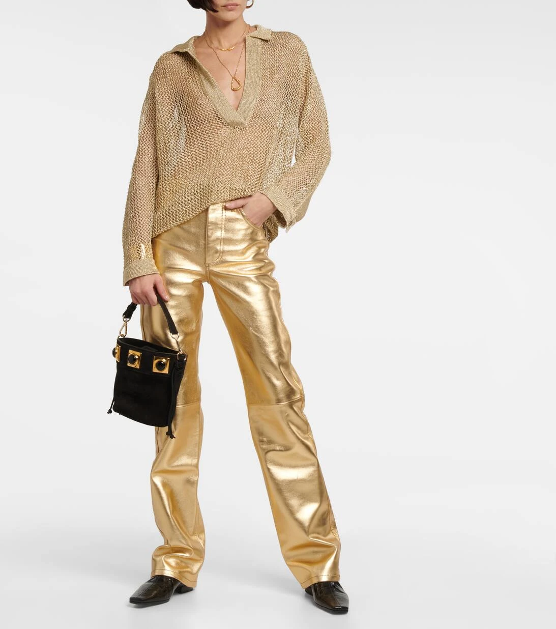 Der goldfarbene Gwen Pullover von Dodo Bar Or präsentiert sich in einer klassischen langärmligen Silhouette. Es verfügt über einen Hemdkragen und Knöpfe an den Ärmelabschlüssen.