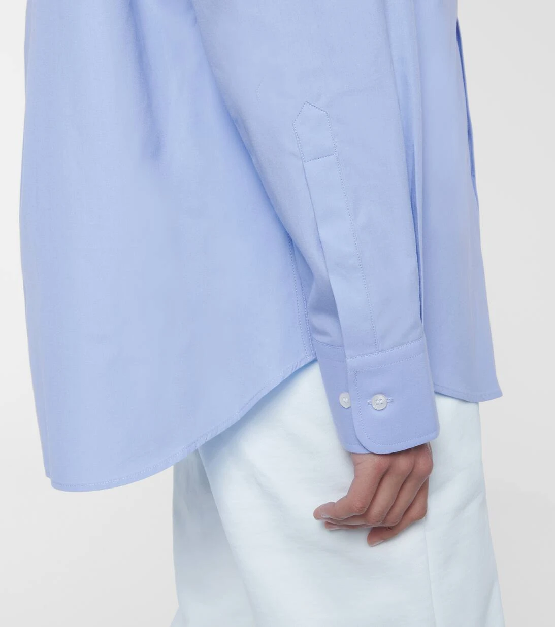 In klassischer Manier präsentiert sich dieses hellblaue Hemd aus der Release 03 Kollektion von WARDROBE.NYC. Es wurde in Frankreich in einer lockeren Silhouette aus reiner Baumwolle gefertigt und neben dem kurzen spitzen Kragen, mit aufgesetzten Brusttaschen samt Knopfdetail akzentuiert. Tragen Sie es ganz im Sinne des Labels zu einer eleganten Steghose und Pumps.