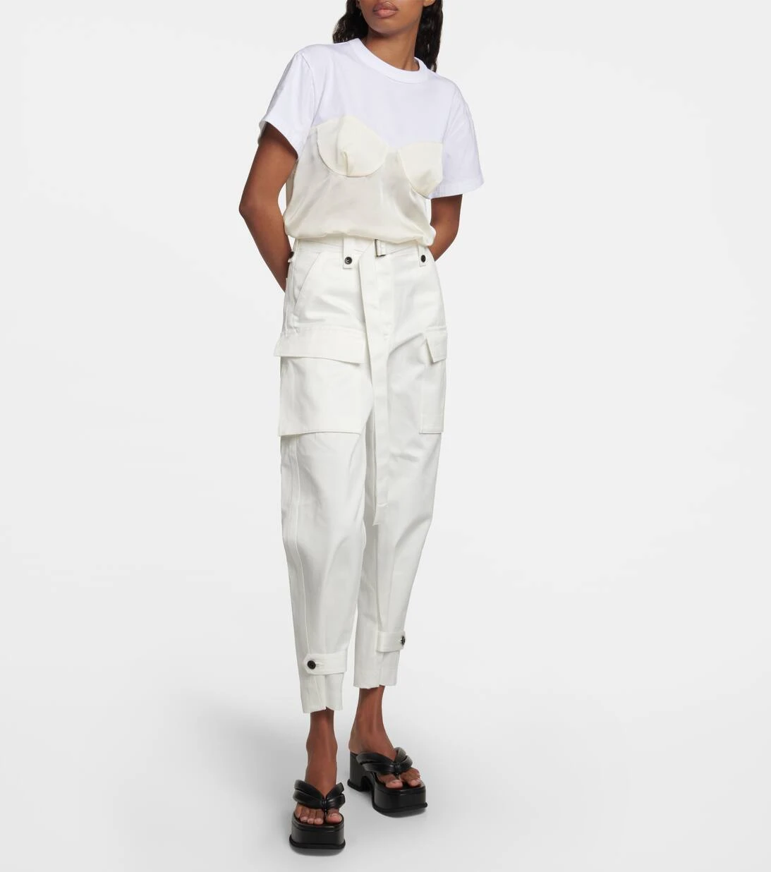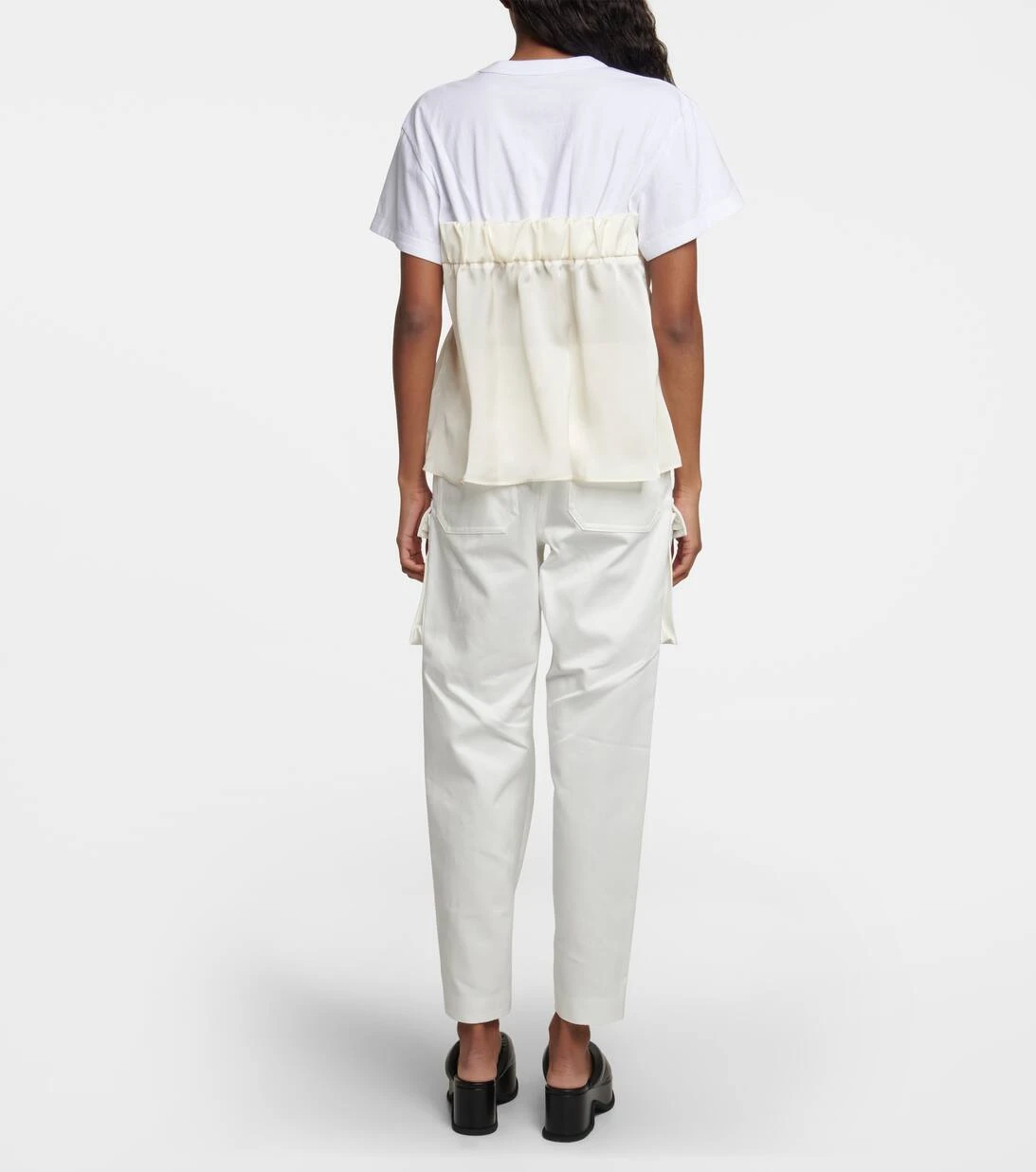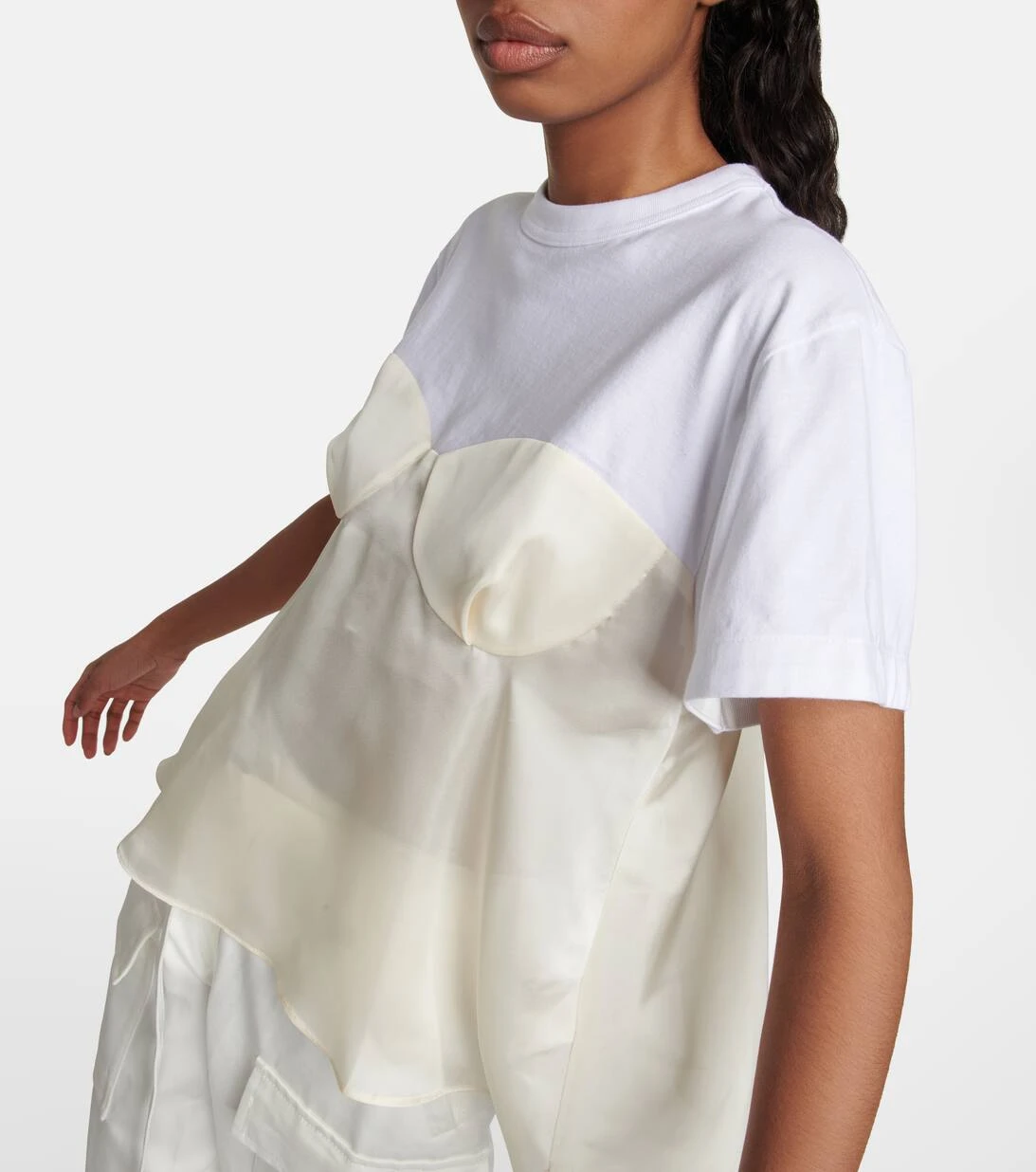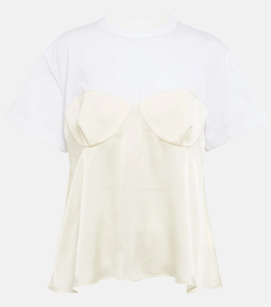 Die Vorliebe von Sacai für hybride Designs zeigt sich in den einzigartigen, innovativen Styles der Marke, die mit kontrastierenden Strukturen, Stoffen und Techniken begeistern. Ein Paradebeispiel dafür ist dieses T-Shirt aus Baumwolle und glänzendem Satin.