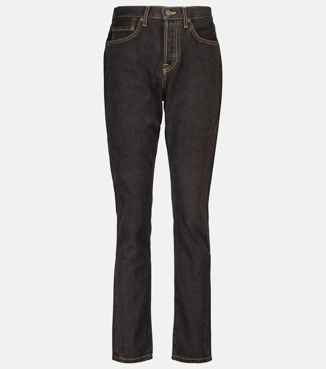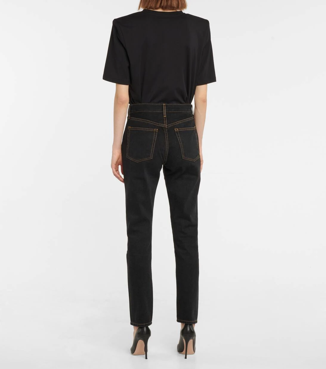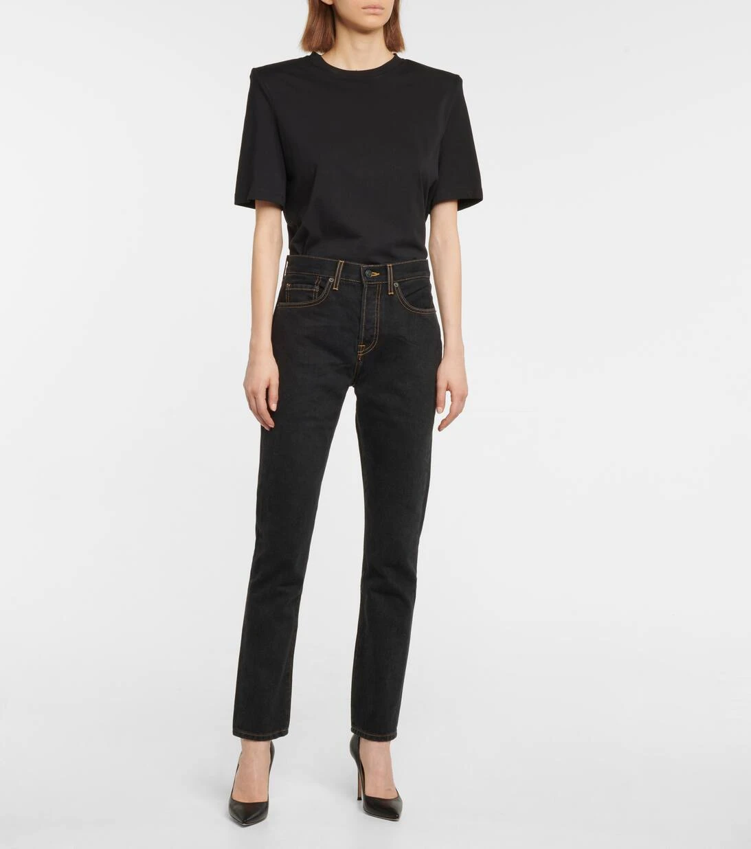 Diese schwarzen Jeans mit Waschung von WARDROBE.NYC mit hohem Bund und schmaler Passform sind eine klassische Ergänzung für Ihre Denim-Kollektion. Diese Jeans mit Kontrastnähten werden in den USA hergestellt und haben ein Five-Pocket-Design.