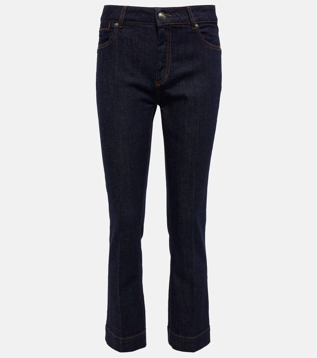 Die Palpiti Jeans von Sportmax zeichnen sich durch ihre leicht ausgestellten Beine aus. Dieses aus Denim gefertigte Modell mit Bügelfalten verfügt über einen verkürzten Saum und eine moderne Low-Rise-Silhouette.