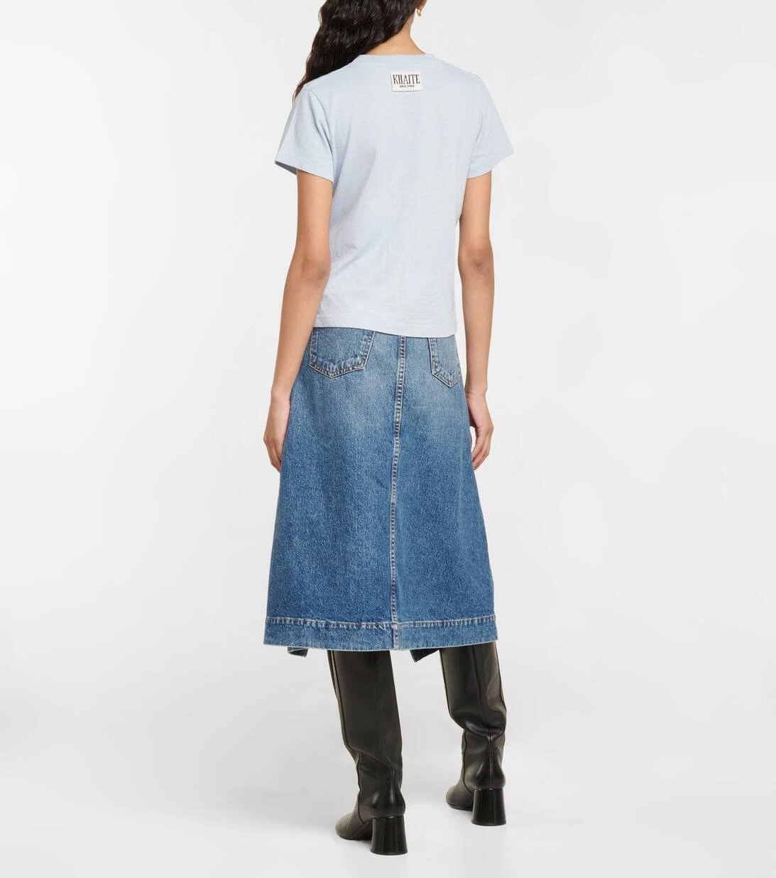 Das Emmylou T-Shirt von Khaite ist ein Design mit Rundhalsausschnitt und geradliniger, leicht verkürzter Passform. Es wurde aus weichem Baumwoll-Jersey in einem lässigen Used-Look gefertigt.