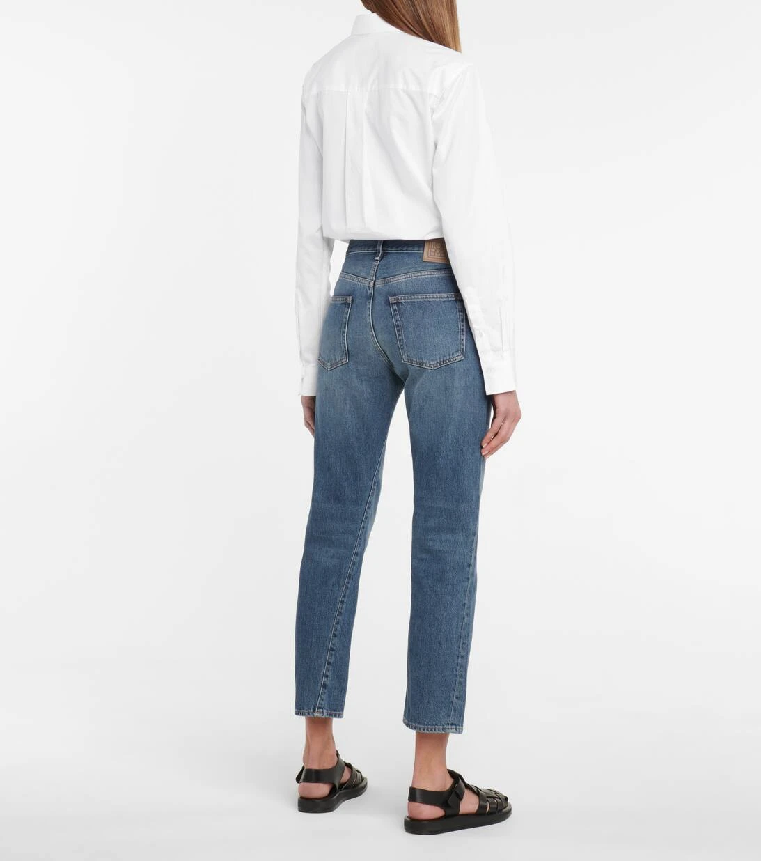 Mit mittelblauer Farbgebung und einem perfekten Mid-Rise Fit präsentieren sich diese Straight Jeans von Totême. Das Modell wurde in Italien aus beständigem Baumwoll-Denim gefertigt und entlang der Knie mit hellen Akzenten gestaltet. In Kombination mit einem Cardigan der Brand entsteht ein legerer Alltagslook.
