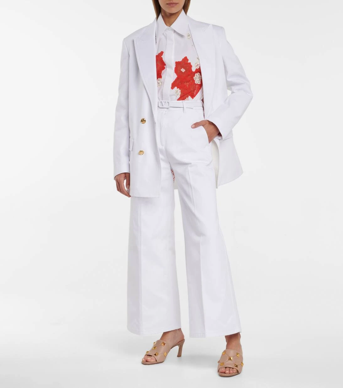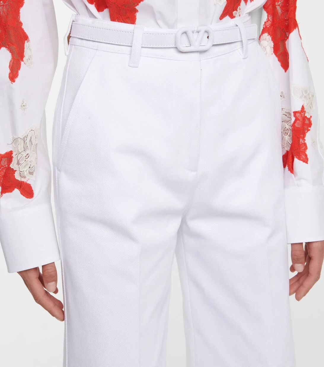 Im Sommer greifen wir besonders gerne zu sleeken Designs wie etwa dieser weißen Hose von Valentino. Das luxuriöse Design wurde in Italien aus luftiger Baumwolle gefertigt und am hohen Bund mit einem zarten VLOGO-Gürtel gestaltet. Das weite Bein wird zudem von eleganten Bügelfalten akzentuiert. Wählen Sie im Set etwa den passenden Blazer der Brand dazu.
