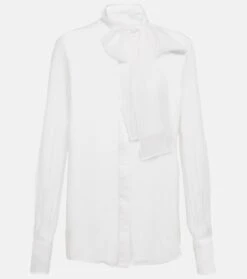 Diese Bluse von Valentino wurde aus leichtem und transparentem Seiden-Chiffon gefertigt. Sie hat einen hohen Kragen mit Bindedetails und geknöpfte Manschetten.