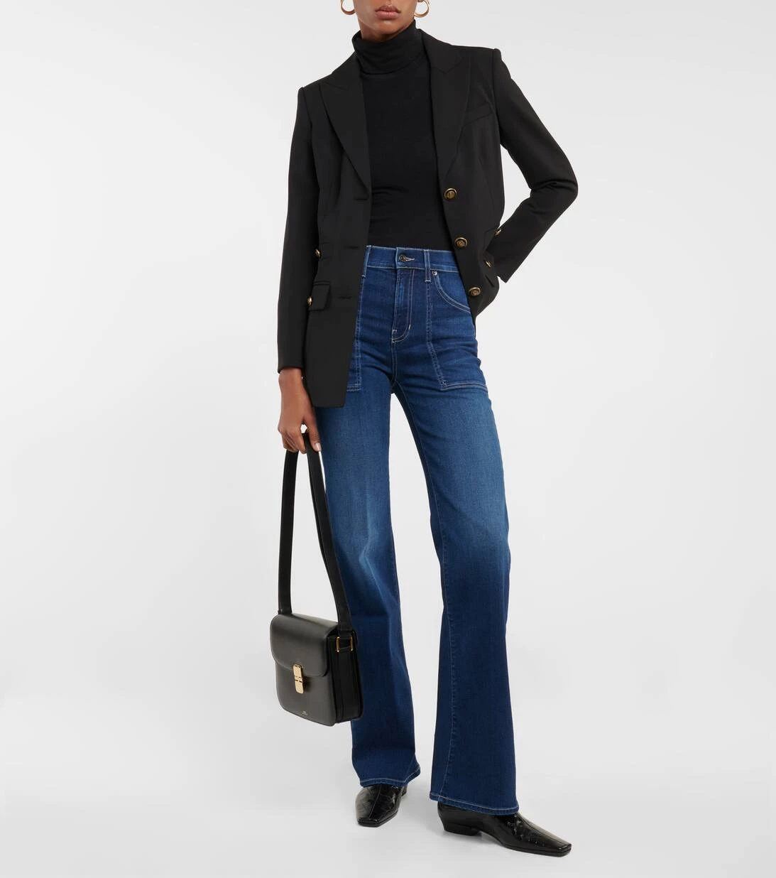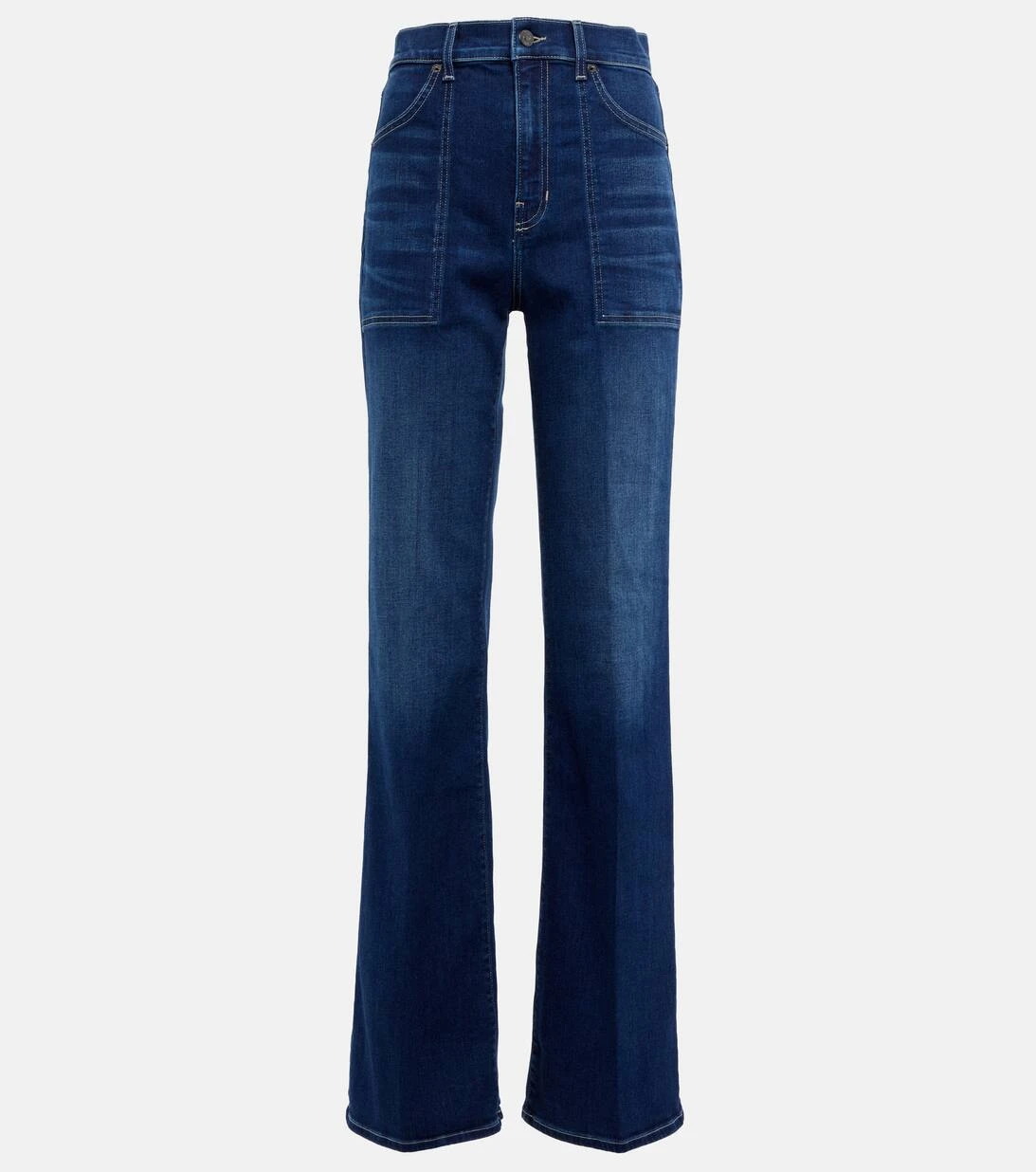 Die Crosbie Jeans von Veronica Beard präsentieren sich in einer ausgestellten Silhouette mit 70s-Flair und großen aufgesetzten Taschen. Sie sind aus elastischem Stonewashed-Denim gefertigt und sitzen hoch in der Taille.