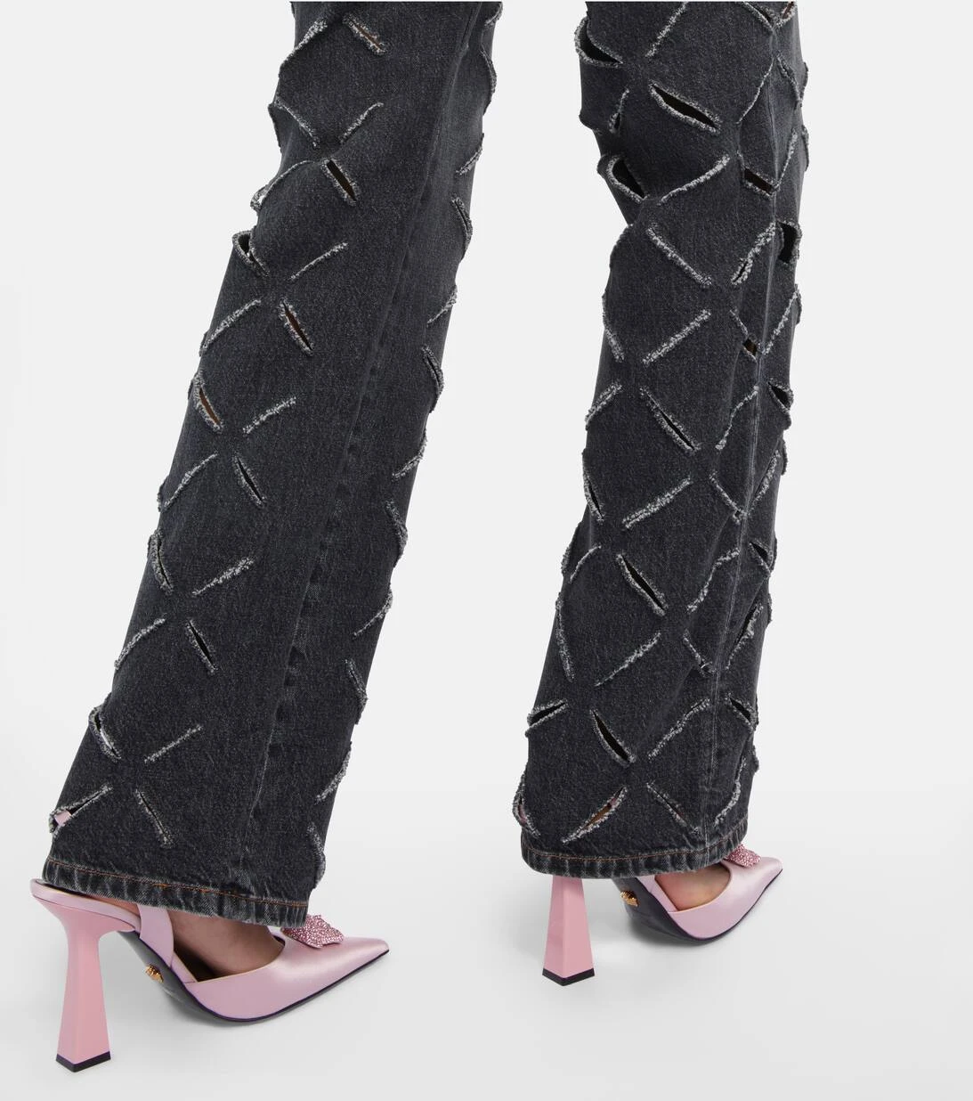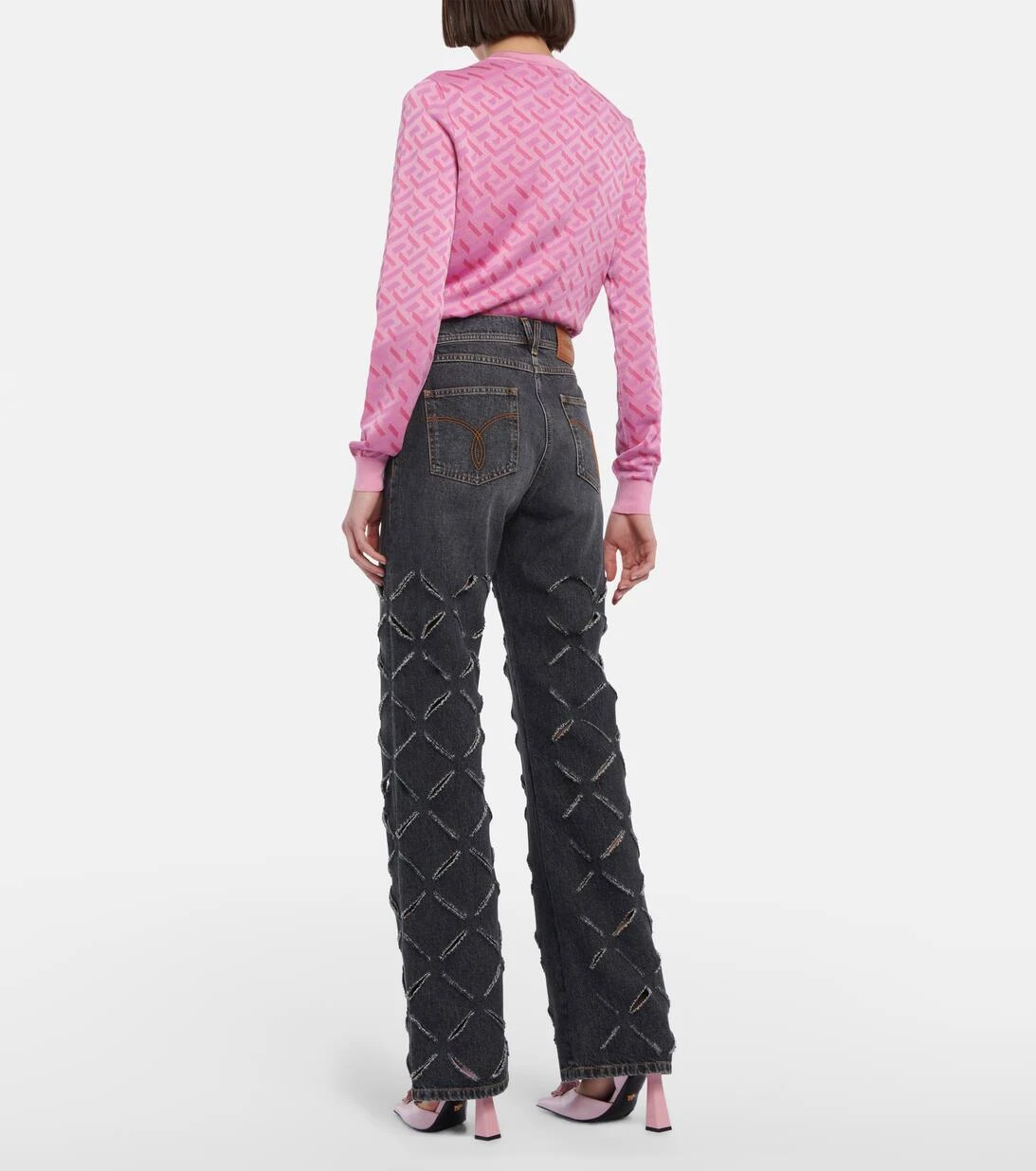 Zeigen Sie Ihre Liebe zu Versace mit diesen Wide Leg Jeans und lasergeschnittenem Details. Das Five-Pocket-Design aus Baumwolle zeichnet sich durch eine mittelhohe Taille und rautenförmige Schlitze aus, die für einen Grunge-Look sorgen.