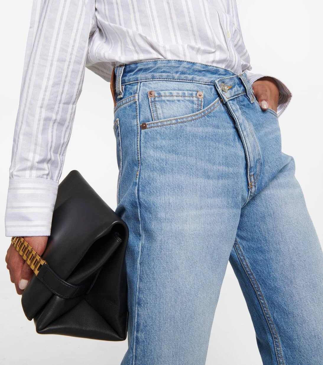 Verfeinern Sie Ihre Alltagsgarderobe mit den Phoebe Boyfriend Jeans von Victoria Beckham. Das High-Rise-Modell aus reiner Baumwolle präsentiert sich mit geradem Bein und einem asymmetrischen Knopfverschluss.
