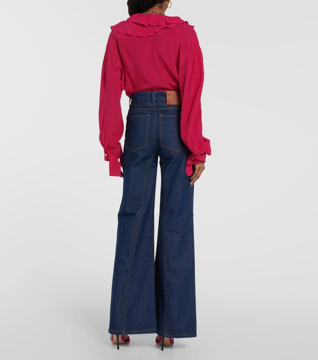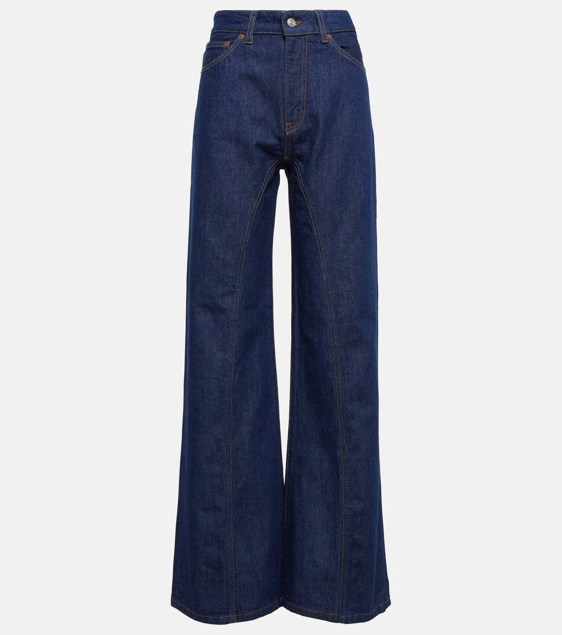 Investieren Sie mit den Bianca Jeans in die zeitlosen Denim von Victoria Beckham. Das High-Rise-Modell mit weitem Bein im Reitsport-Stil besticht durch klassische Details wie braune Steppnähte, Logo-Nieten und ein Five-Pocket-Design.